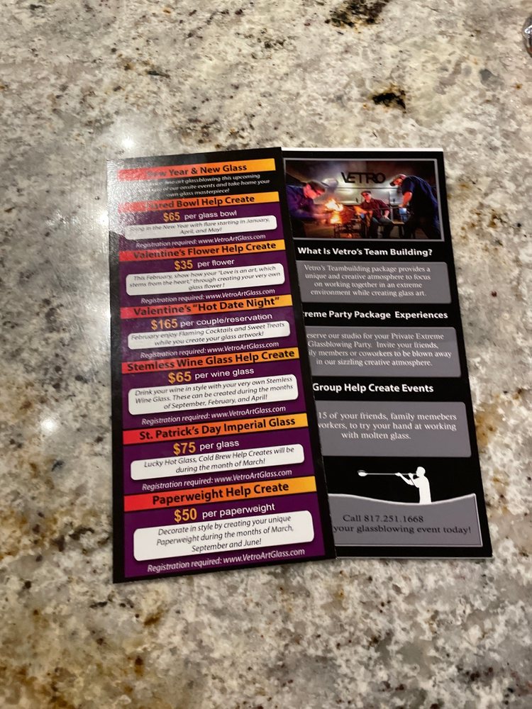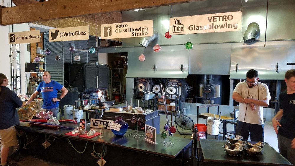 Glass artist David Gappa founded Vetro in 1999. During that time, Gappa cultivated a team of glass artists who perform their art of glassblowing in Vetro’s state-of-the-art working studio. The studio and attached fine art glass gallery are located in the historic district of Grapevine, Texas. Vetro’s glass has found its way into the hands of art collectors, corporate designers, museum curators, celebrities and leaders of state worldwide. Vetro artists enjoy educating the public about this ancient art form through live demonstrations. Vetro’s friendly and inviting gallery staff creates a relaxed and comfortable gallery atmosphere in which to browse and shop.