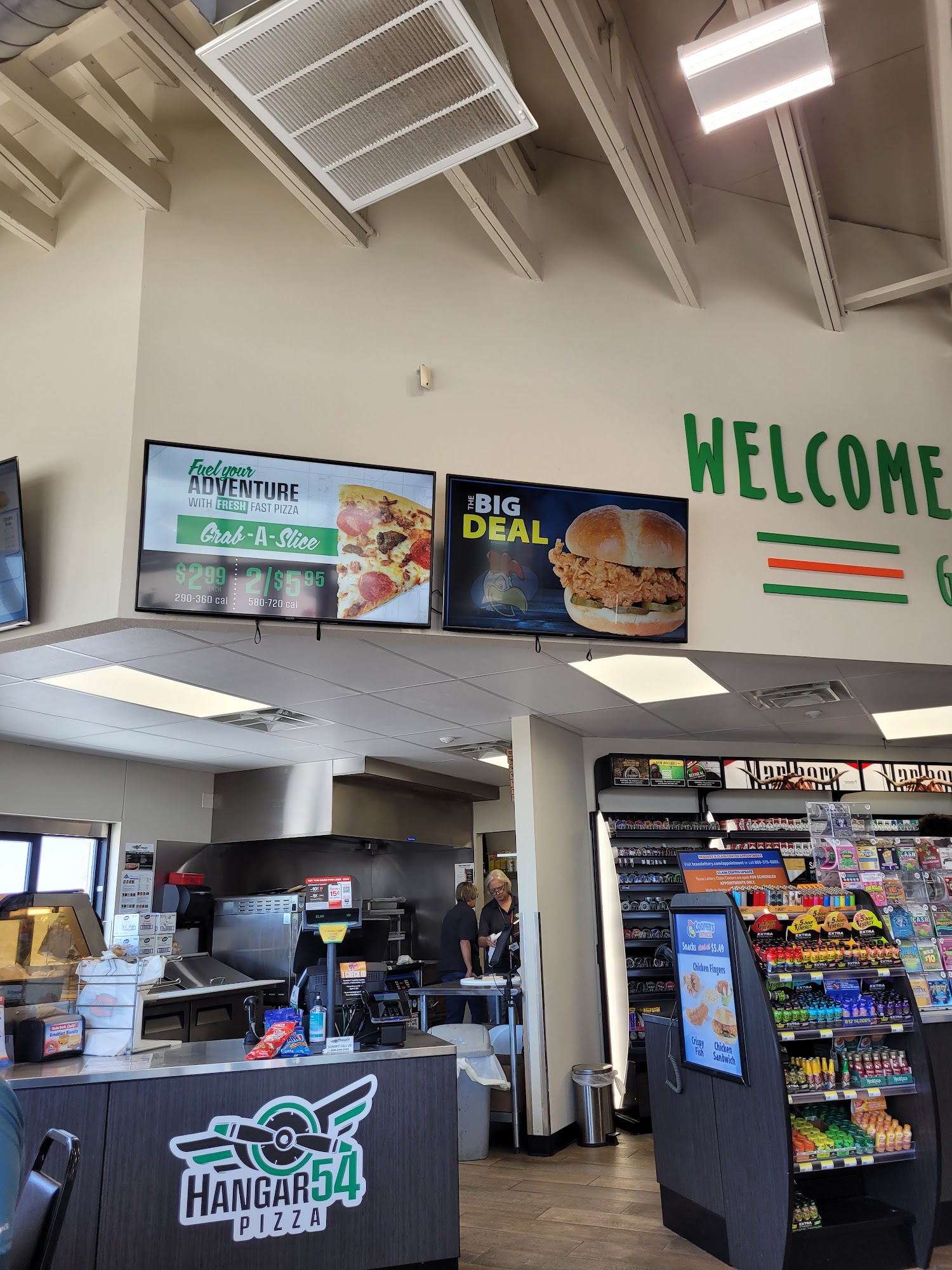 Easy place to get off of the freeway with plenty of room to fill up our truck while pulling our 30 ft travel trailer. Clean restrooms and plenty of snack foods.