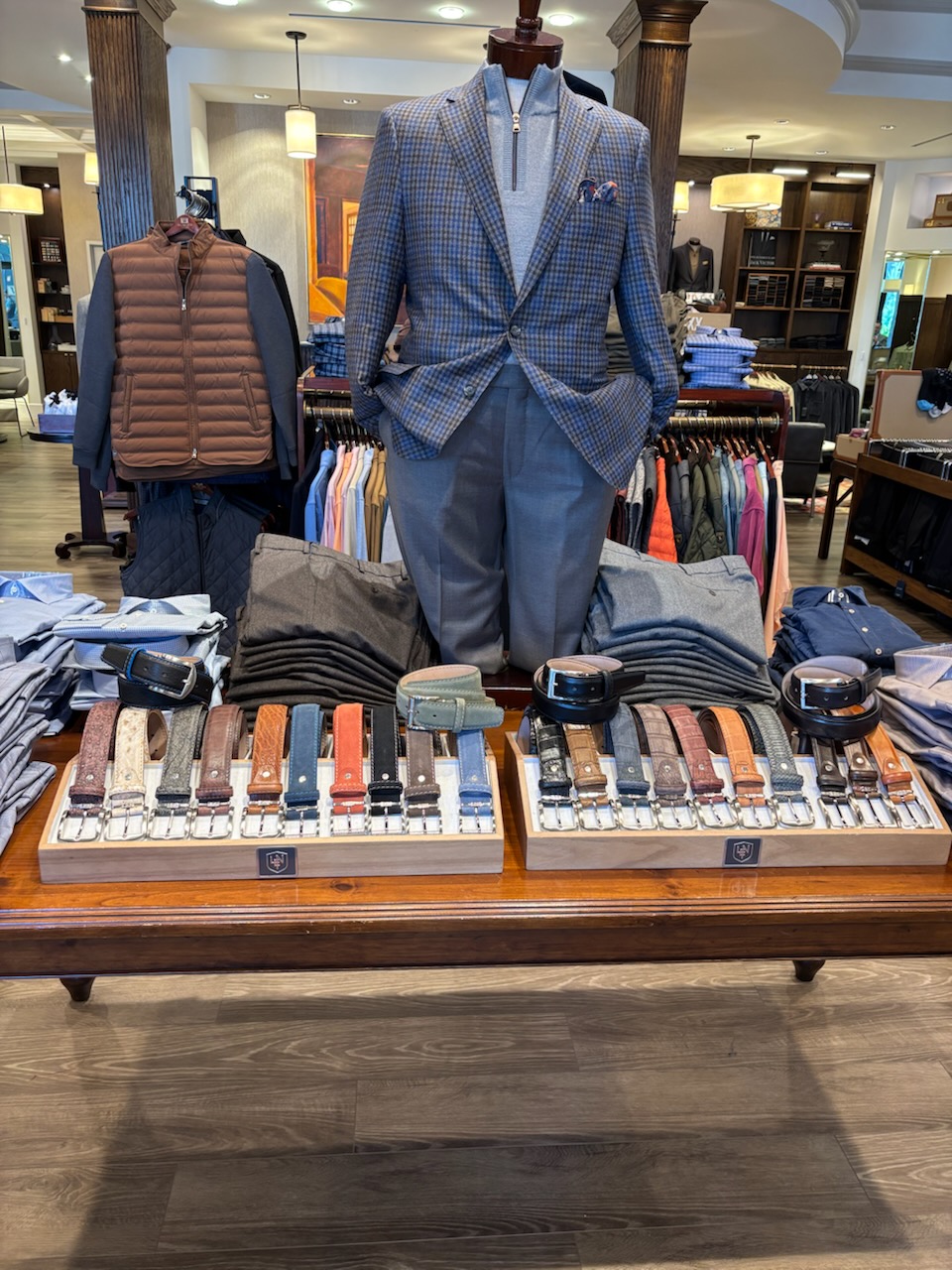 The leading men's luxury clothing store in Houston. From casual to luxury clothing that includes great men's clothes for casual Friday business. Sportswear all the way to resort and beach wear that is comfortable and stylish. Appointments are recommended for best measurement and fitting. Custom-made shirts to customized suits and sport coats, we have an internal tailoring team that is second to none with their artisan hand craftsmanship. We help the groom, fathers, best man and groomsmen at wedding time too. In Post Oak Plaza, Post Oak Blvd near San Felipe.