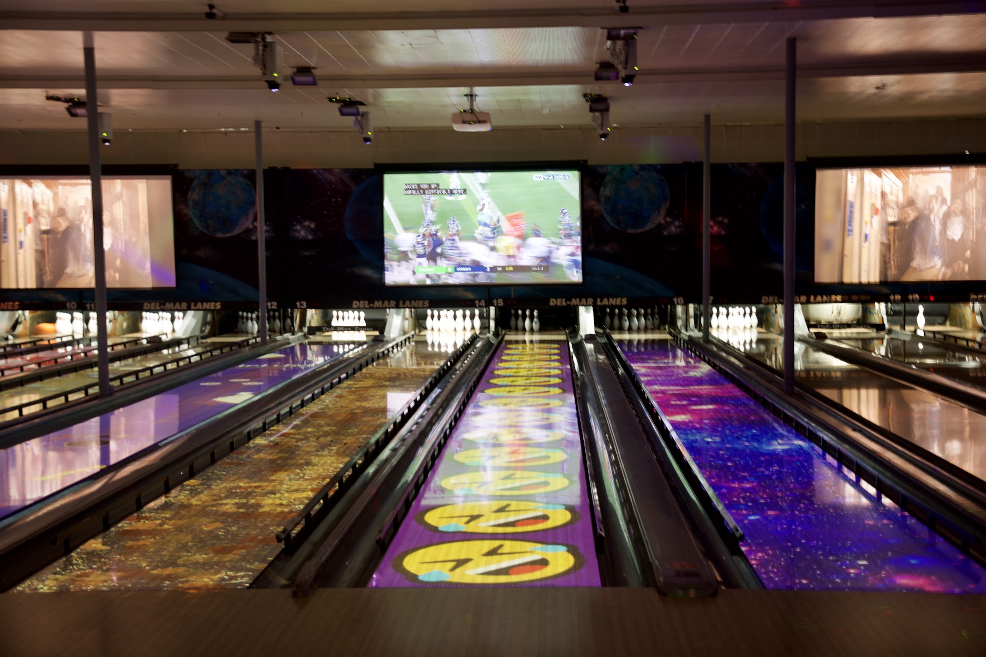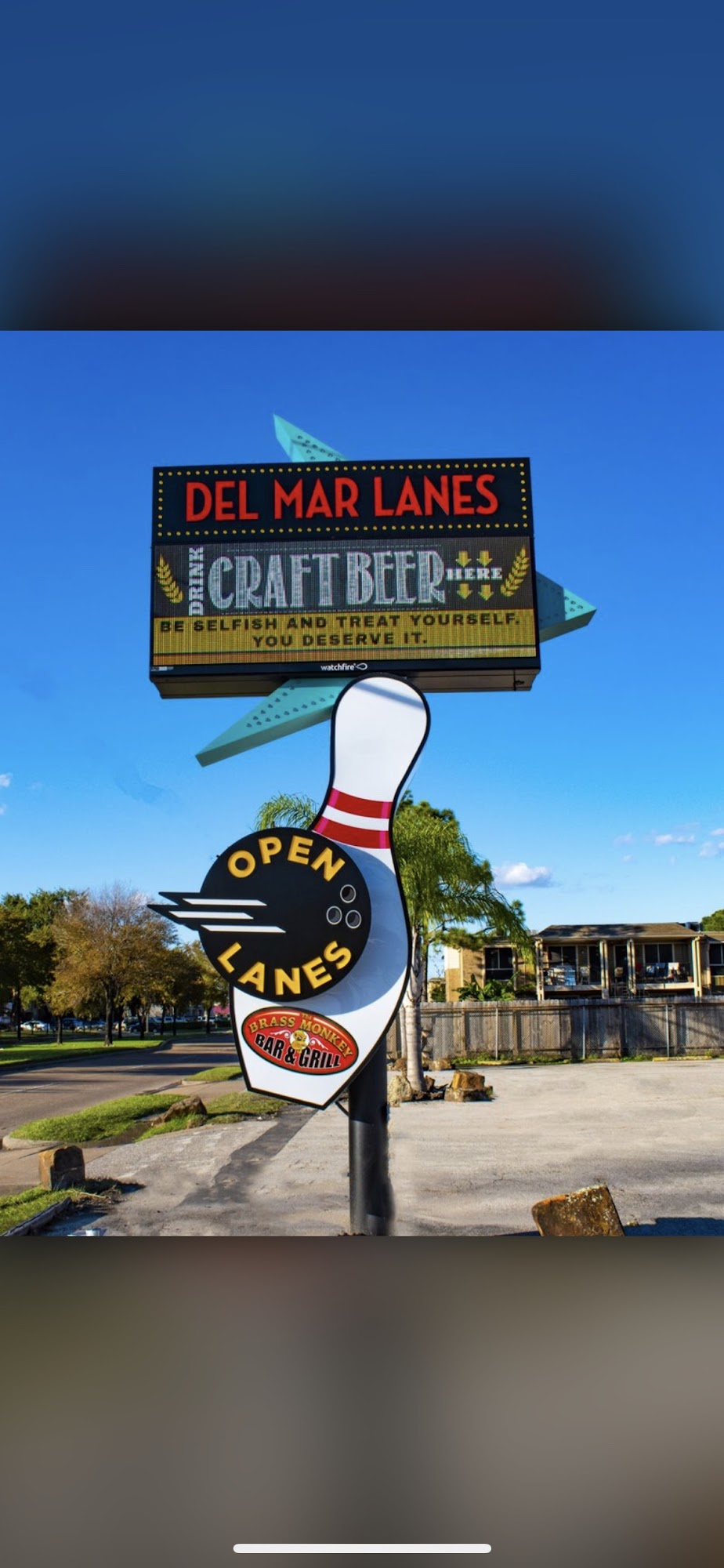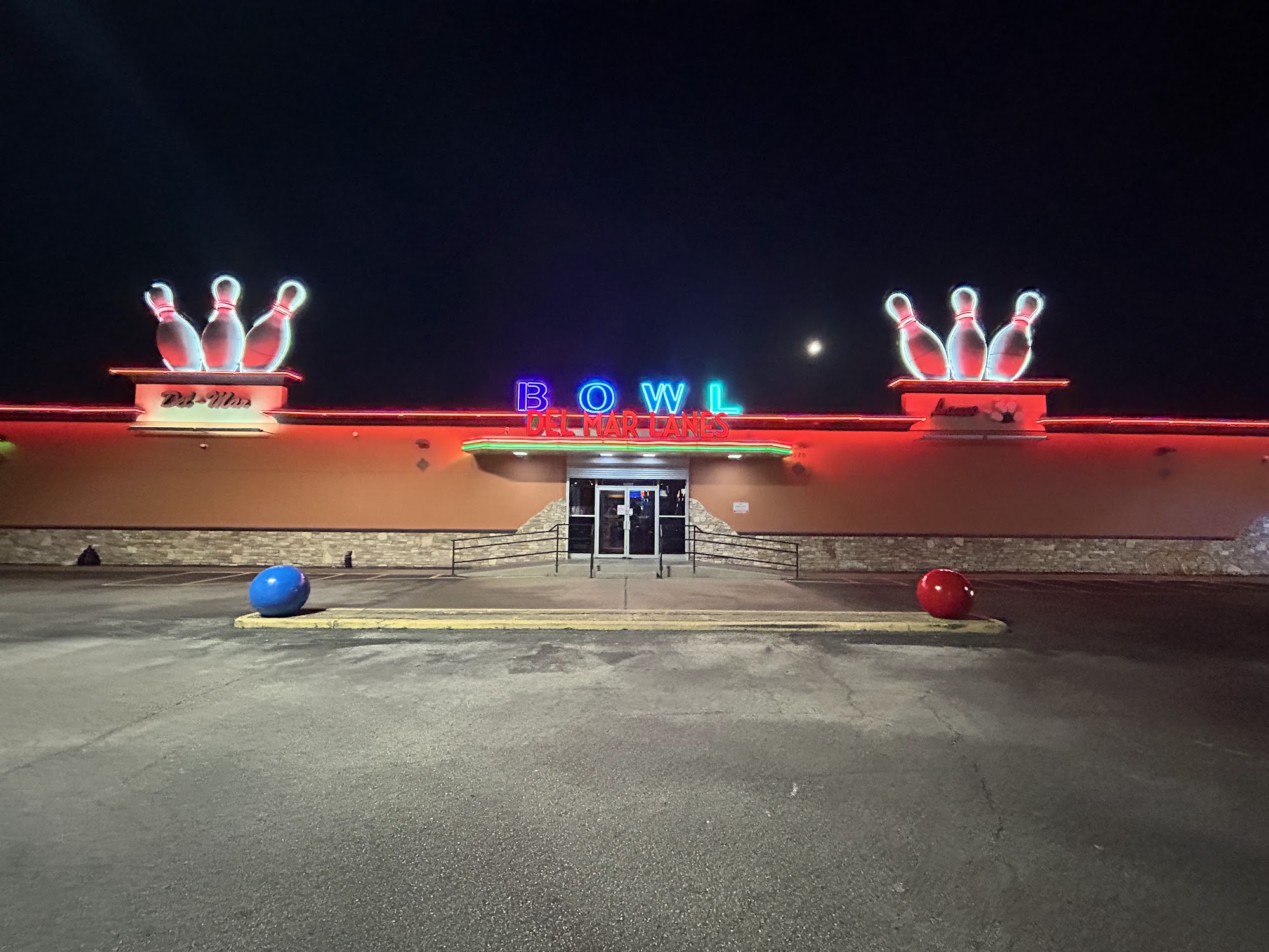 Del Mar Lanes is a modern, state-of-the-art bowling entertainment center in Houston, located at 3020 Mangum Road. It offers an interactive bowling experience with high-end video graphics and audio sound effects, as well as Unreal Bowling technology that brings the bowling ball and lane to life. The facility provides catered private lane reservations for various events, and it houses the Brass Monkey Bar & Grill, a full-service restaurant and bar with a wide selection of drinks and periodic live music performances. Customers praise Del Mar Lanes for its cleanliness, good food, and helpful staff. The bowling alley is well-run and offers a classic bowling experience at a reasonable price compared to similar establishments. The pro shop team is knowledgeable and offers valuable recommendations, and they even clean customers' bowling balls for free. While the lanes can get crowded with leagues, the facility is generally described as a great place for families, parties, and corporate events.