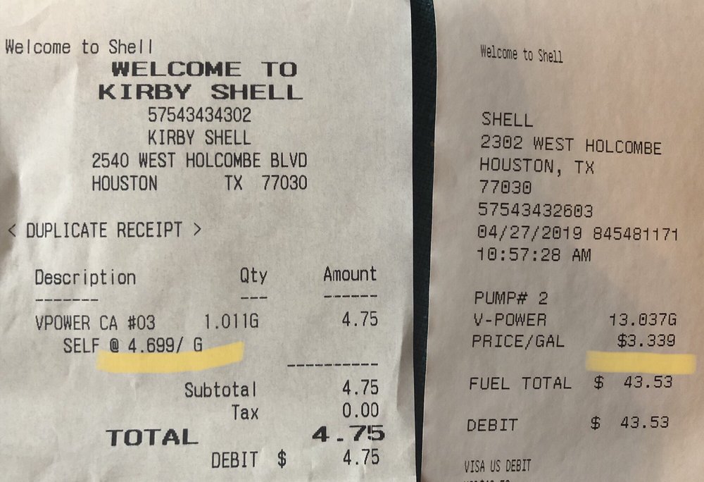 My car requires premium gas and this station has the highest prices I've ever seen. Unleaded will be advertised as a decent price on the sign but you don't see the price for other fuels till you pull up. 4.69/gal vs 3.39/gal at the Shell a block away on Greenbriar. Insane.