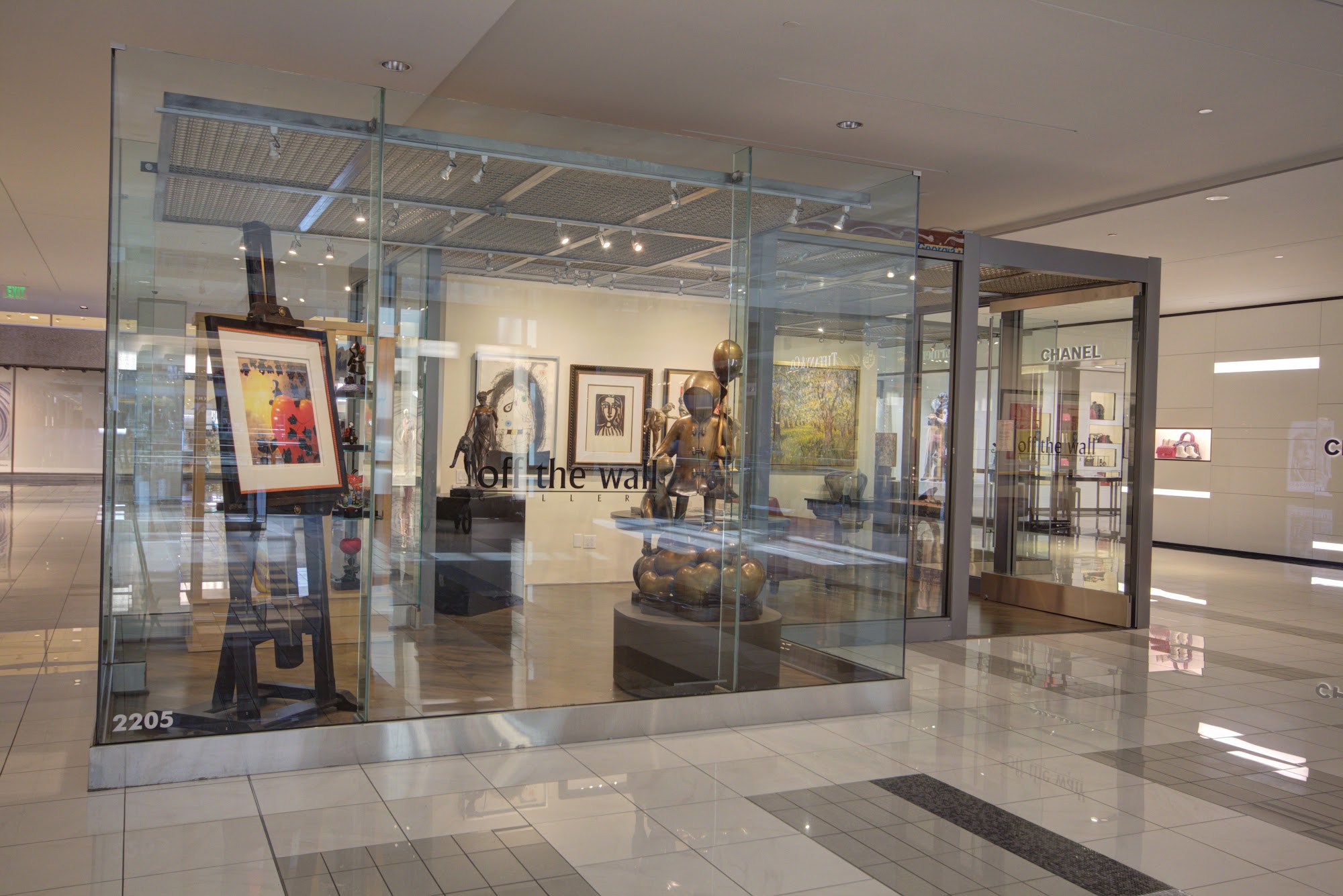 Off The Wall Gallery is home to rare and hard-to-find works by modern masters and original paintings and sculptures by established contemporary artists worldwide. The Main Gallery is located in The Galleria, on the outside, at street level, facing Post Oak Boulevard, adjacent to Neiman Marcus valet parking and Orange public garage. The sister Gallery, Atelier Off The Wall, is located inside Galleria One, Level One, across from Dior, Prada, and Louie Vuitton boutiques. Services Offered Art consultancy for corporate and residential clients, Art installation, Custom framing, Fine art restoration, Event venue, Art Brokerage, Gift of Art Registry, and Third-party appraisal. All Artwork displayed in the Gallery is for sale, and Entry is free.