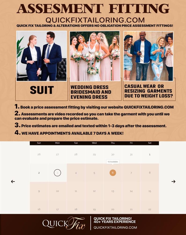 QuickFix Tailoring Alterations & Tuxedos is a highly-rated tailor shop in Houston, boasting over 35 years of experience in tailoring and alterations. The business specializes in both men's and women's clothing, offering alterations for suits, coats, slacks, shirts, dresses, and gowns. They also provide tuxedo rentals and a selection of accessories. QuickFix is open seven days a week, making it convenient for customers. Customers consistently praise the professional and courteous staff, particularly noting the helpfulness and knowledge of the team. Many reviews highlight the quick turnaround times and the quality of work, with several clients expressing their satisfaction and intent to return for future tailoring needs. The shop has a welcoming atmosphere where questions are answered, and clients feel valued. One customer mentioned an impressive experience where a dress alteration was completed in just two days, exceeding expectations. Overall, QuickFix Tailoring Alterations & Tuxedos stands out for its exceptional customer service, efficiency, and dedication to delivering great results.