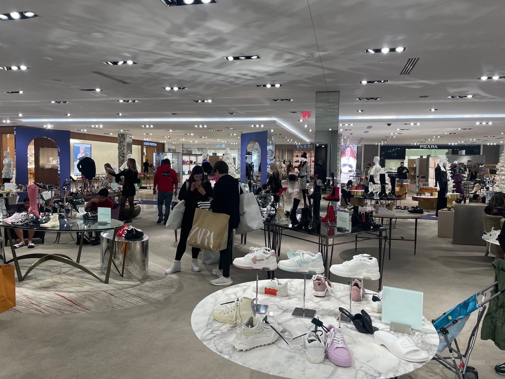Saks Fifth Avenue is a high-end department store offering a fantastic and large selection of different brand clothing, shoes, and everything. It features a high-end little section of boutiques such as Louis Vuitton, Gucci, and Christian Louboutin. The products are very different, fine, and high-quality, which means they are not cheap, though sales and bargains occasionally occur. While inventory per brand can be a bit limited, it remains the most convenient place to see different designer options all in one store. The staff are amazing, extremely friendly, and professional, with highly recommended assistance at counters like GUERLAIN, GUCCI, EX NIHILO, and Parfums De Marley on the bottom floor. They provide delightful service, extensive knowledge, and sometimes host special events.