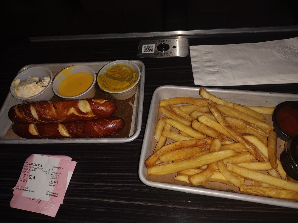 Star Cinema Grill is a popular and well-reviewed movie theater that offers a unique cinematic experience. Customers praise the clean and professional atmosphere, as well as the attentive and cordial staff. The theater's small, cozy booths with free popcorn are a hit, creating a comfortable and enjoyable environment. While the food may be a bit salty for some, it is generally considered good enough to satisfy hunger. The theater's cleanliness, especially the restrooms, is also highlighted. Although the movie selection may be limited compared to other locations, Star Cinema Grill is highly recommended for its overall excellent service and comfortable setup.
