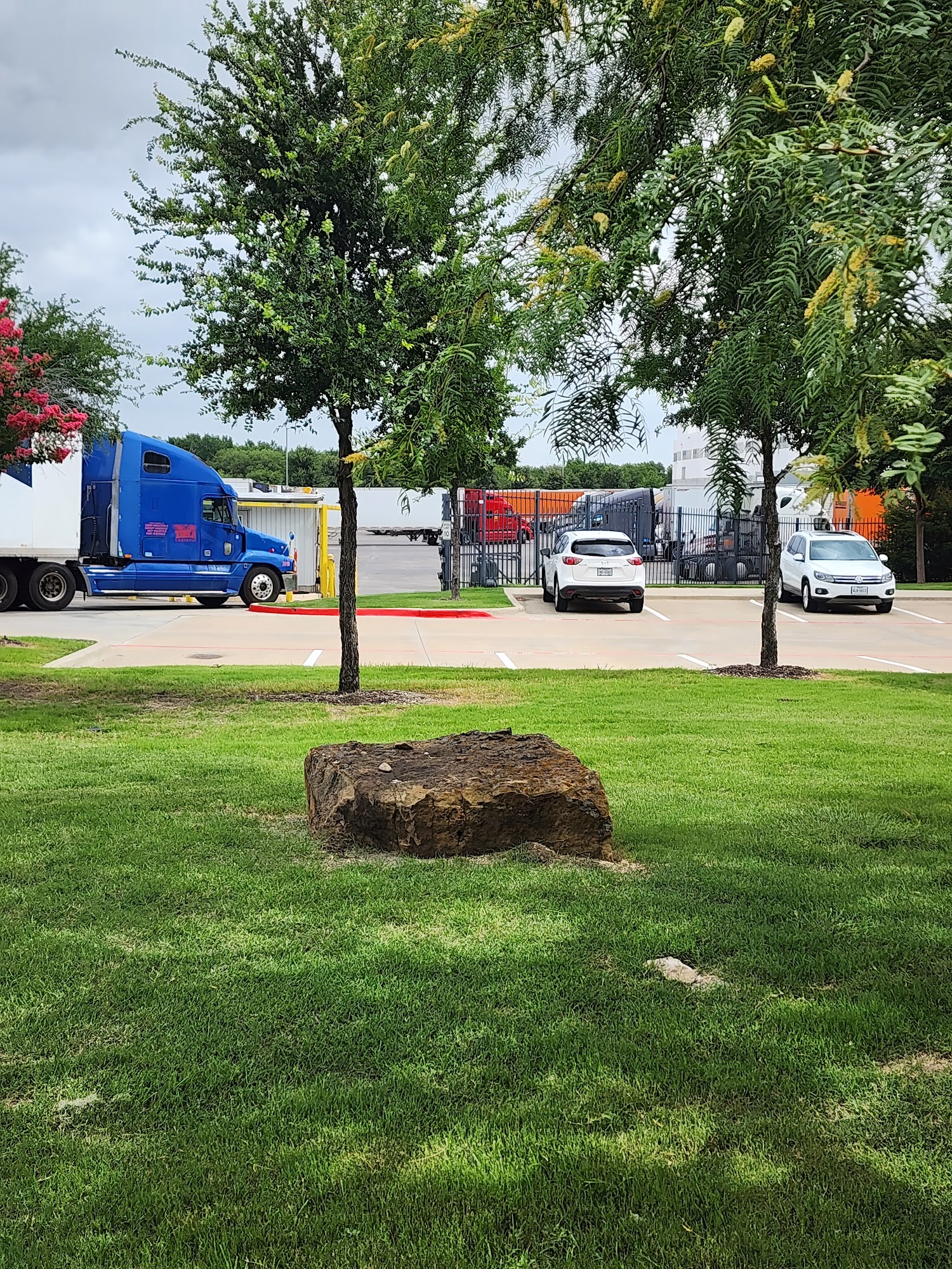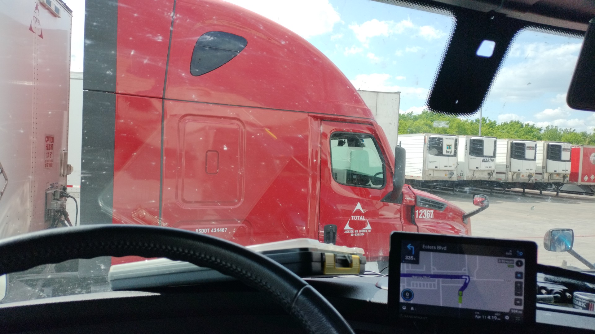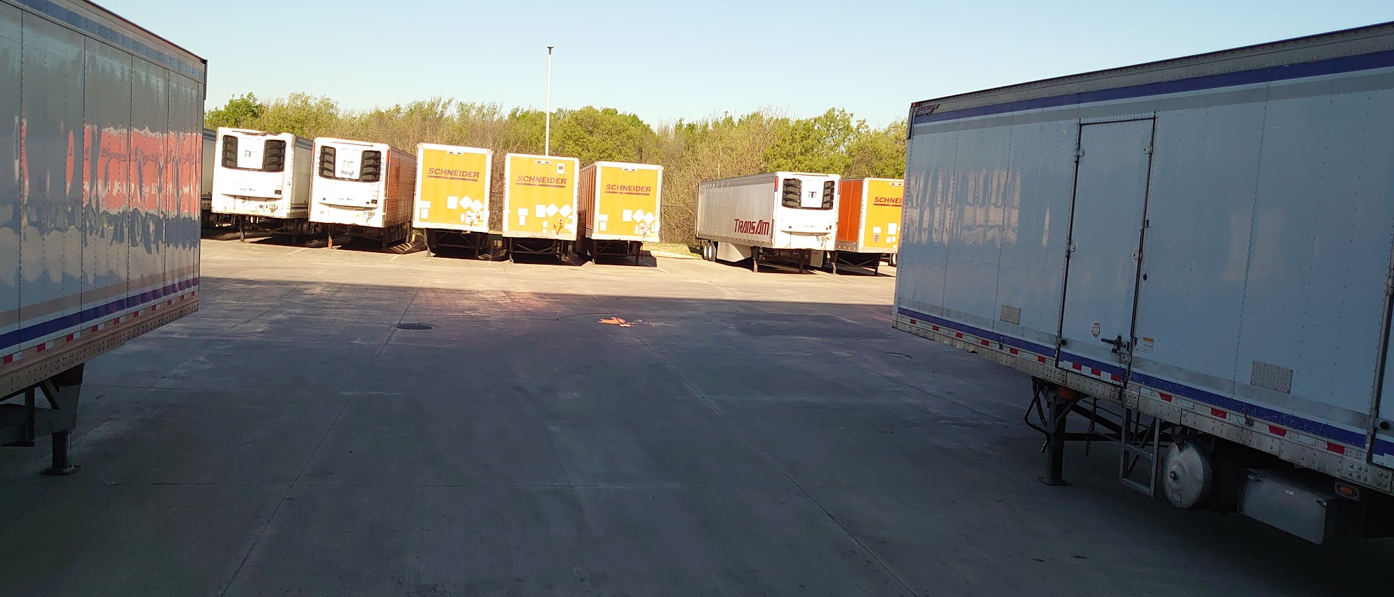 Check in with the nice lady security open trailer door while waiting for a text for the door. When door turn green paperwork will be on your trailer then check back with the security.