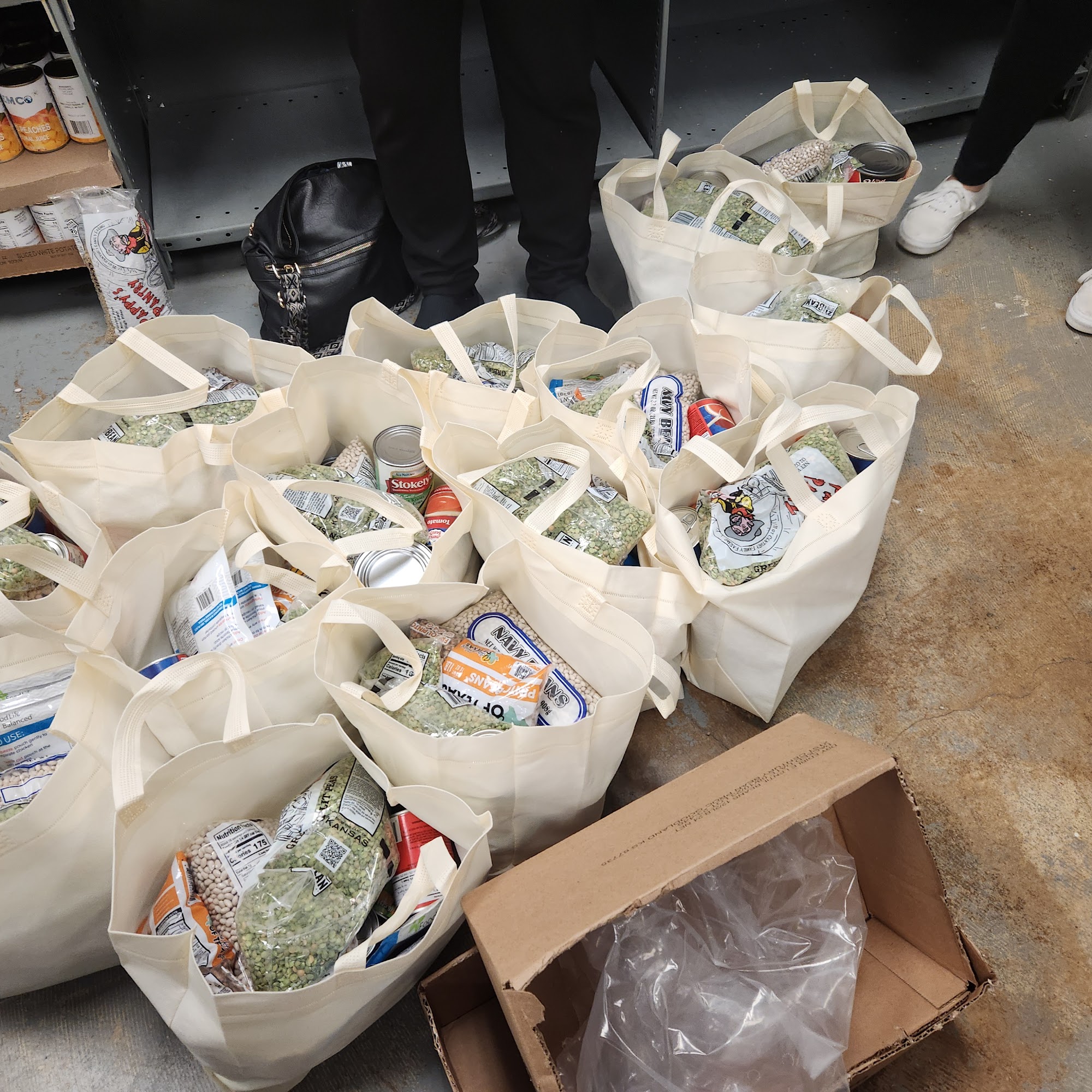 I dropped off food and a box of unused reusable tote bags the clients they serve can use.