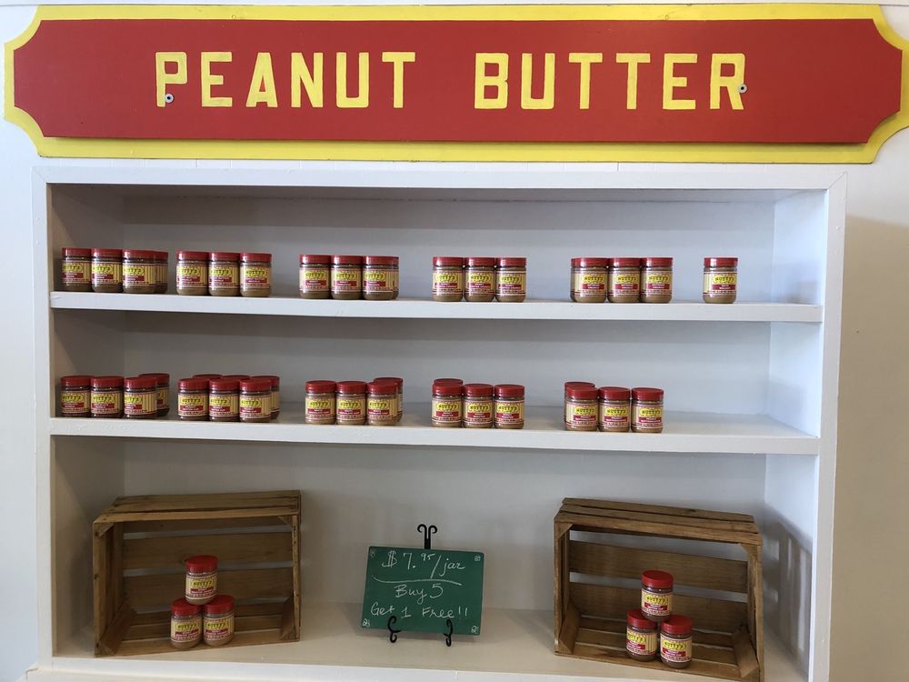 Nutty's Peanut Butter is a fun little store and a must-stop for peanut butter lovers. Customers can sample all the many delicious flavors and tasty selections before purchasing, which is highly recommended. The owner is very sweet, nice, friendly, and helpful. People leave with jars of peanut butter and lots of other goodies like brownies, rice crispies, fudge, candy, ice cream, cookies, cake balls, and chocolate covered things. Everything is super delicious and a big hit. It is a great little stop and a must-have if you are in the area or town.