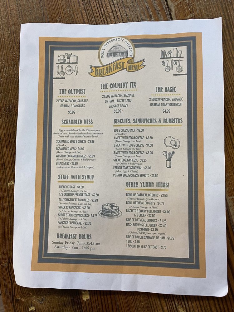 PORT JEFFERSON OUTPOST is a charming general store that offers a delightful dining and shopping experience. The establishment serves a variety of delectable breakfast and lunch options, including a full-service espresso bar, Blue Bell ice cream, fudge, gourmet chocolates, and an assortment of sweet treats. Customers can also browse through a selection of local books, kitchen utensils, jams, jellies, salsas, pickles, and gifts. The store is known for its southern hospitality, nostalgic ambiance, and patriotic atmosphere. Reviewers praise the friendly and helpful staff, the reasonably priced and delicious food, and the overall well-run operation. Whether you're stopping in for a hearty breakfast, a refreshing snack, or a unique shopping experience, PORT JEFFERSON OUTPOST is sure to delight.
