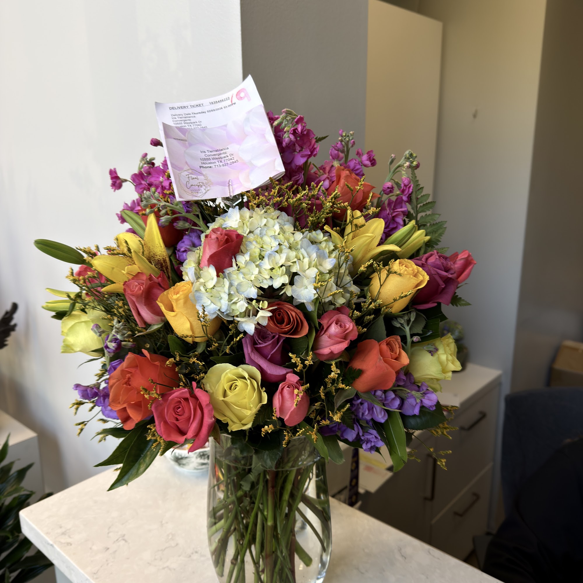 Thank you Floral Concepts for the beautiful arrangement of flowers with a reasonable price. I highly recommend this flower shop.