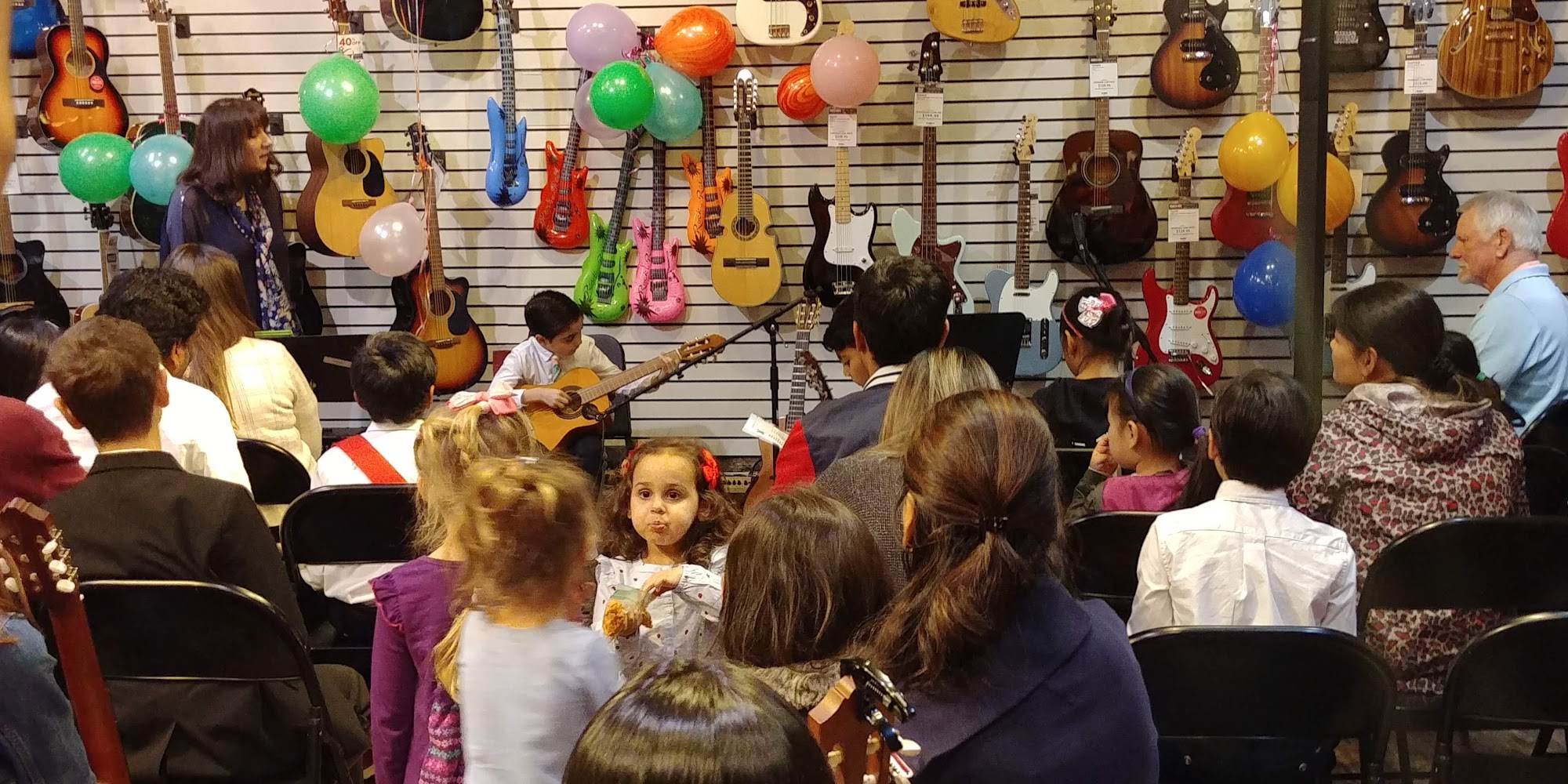 Full of music, unplayed, hanging on the walls awaiting an eager hand to strum or bow to race across strings. Great people who love music and who would love to help you express what lies within you.