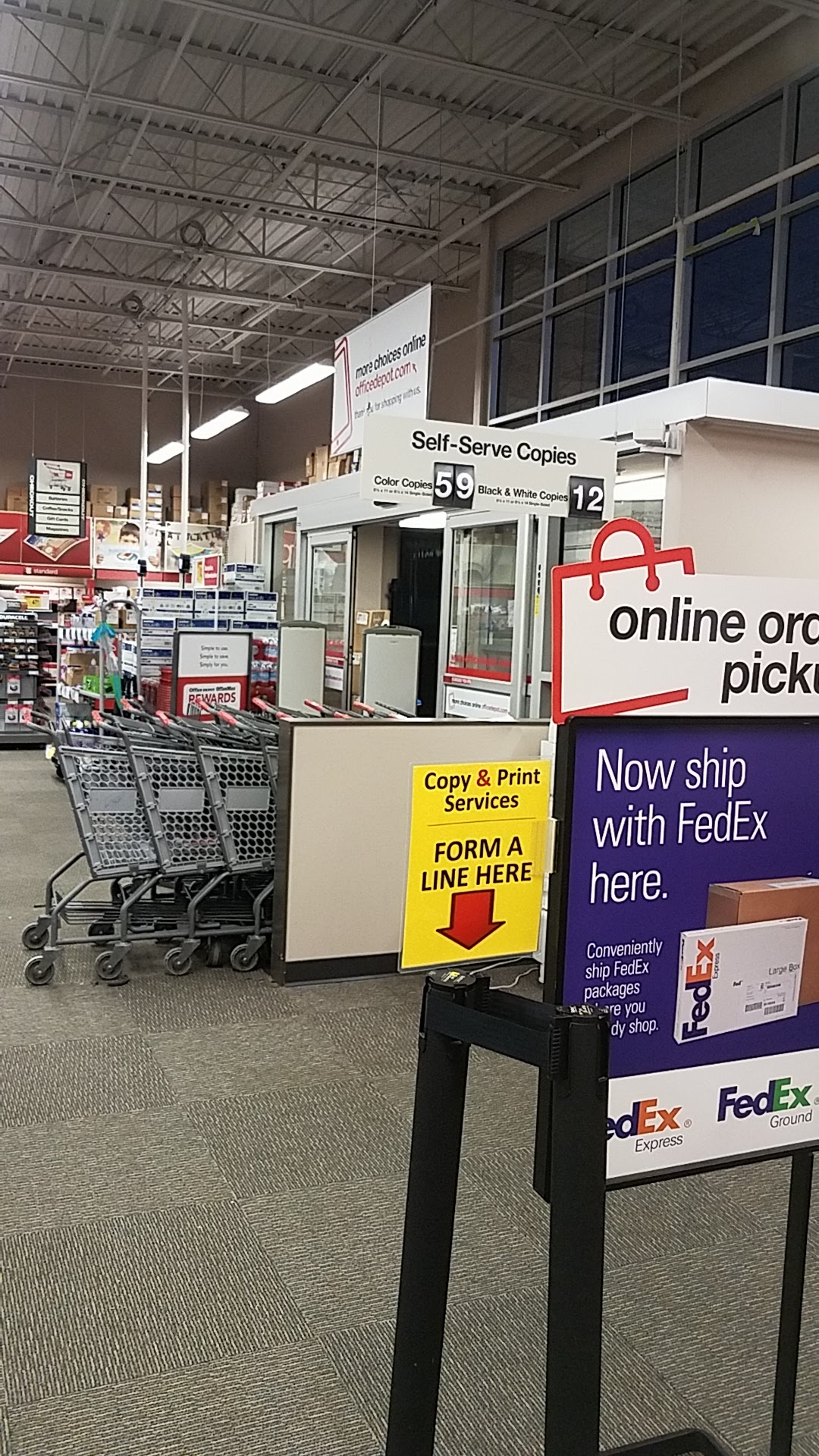 Office Depot is the destination for all your business and home office needs. This store now offers curbside pickup for all online and app orders. From paper, ink, furniture, technology, cleaning and breakroom supplies to business services like custom printing, shipping and tech support, your Office Depot store advisors will help you save time and tackle your toughest challenges. Customers have praised the excellent service in the Print Shop, the helpful and courteous staff, the clean and organized store, and the budget-friendly prices. The store has been a reliable "go-to" for printing jobs, and customers have had a very good experience shopping there, including for computer purchases at reasonable prices.