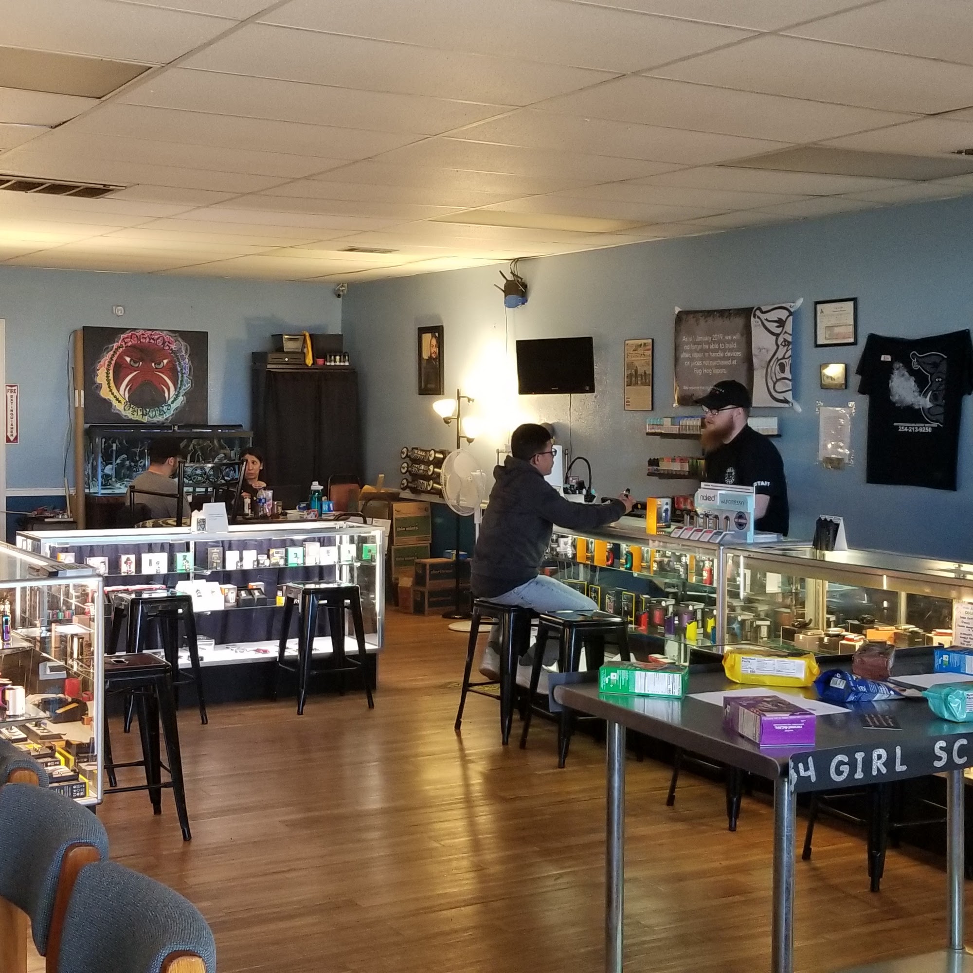 Fog Hog Vapors is a veteran-owned local vape shop founded in 2015 with the mission to help people quit smoking for good. It has expanded to provide legal cannabis products like Delta 8 and CBD from its nearby location, Fog Hog Farms. The shop is known for its great customer service, knowledgeable staff, and excellent product selection, setting a high standard for other stores. Customers describe a very clean and decorated atmosphere with a friendly, social environment where people are encouraged to hang out. The staff are polite, very knowledgeable about all their products, and provide great prices from low to high. They offer a points rewards system and are recognized for having great management and employees who resolve any issues with precise and intentional judgement. Many highly recommend it as the local smoke shop to visit, noting the flower has a great taste, smell, and effect. Customers love it the moment they walk in and find it a safer, more legal alternative.