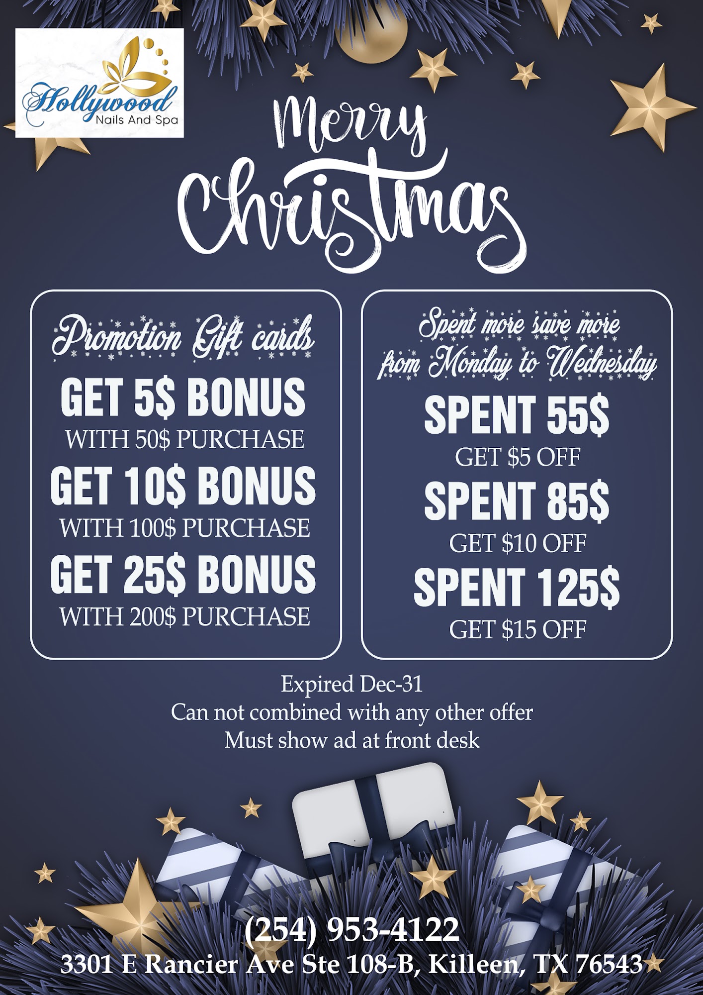 Nail Salon 76543 | Hollywood Nails And Spa of Killeen, TX 76543 WHAT MAKES US DIFFERENT? Welcome to Hollywood Nails And Spa Welcome to one of the best Nail Salons in Killeen, TX 76543! Our modern salon offers a variety of services and treatments, including signature spa pedicures and manicures, fashionable nail designs, and top name brand products. Our salon offers a personalized approach to beauty and wellness, helping you to look and feel your best. Our priority is your safety and comfort, and we adhere to the highest industry standards of sanitation and disinfection.