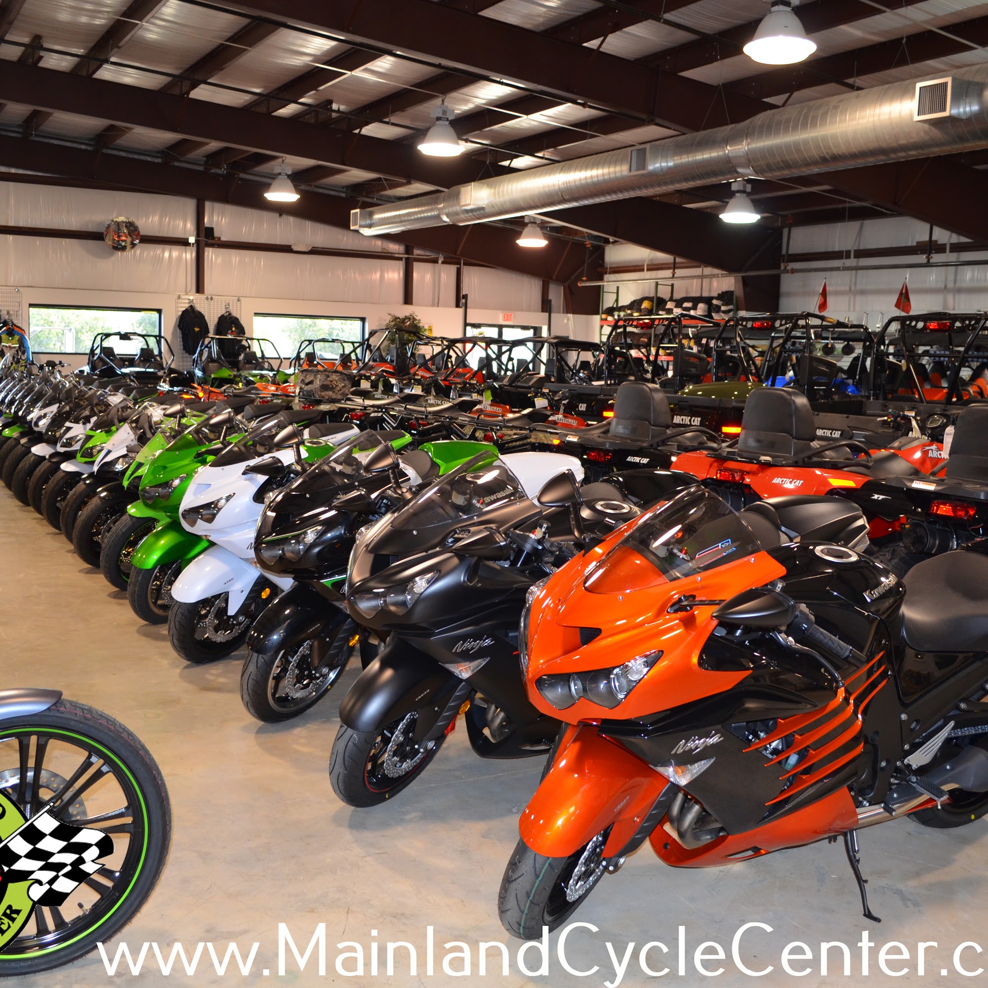 Mainland Cycle Center is a family owned dealership offering sales and service. They sell motorcycles, UTVs, ATVs, Jet Skis, utility trailers, golf carts, and zero turn mowers, representing brands like Kawasaki, KTM, and CFMoto. Customer satisfaction is their priority with no hassle, drive out pricing and special financing. Reviews note the owner is supportive, informative, and helped save money with great deals and the best prices. The buying process is described as quick, easy, and painless. Their service department works on every make and model, with knowledgeable, friendly, and helpful customer service and techs. They are also recognized for supporting a local nonprofit group that helps the community.