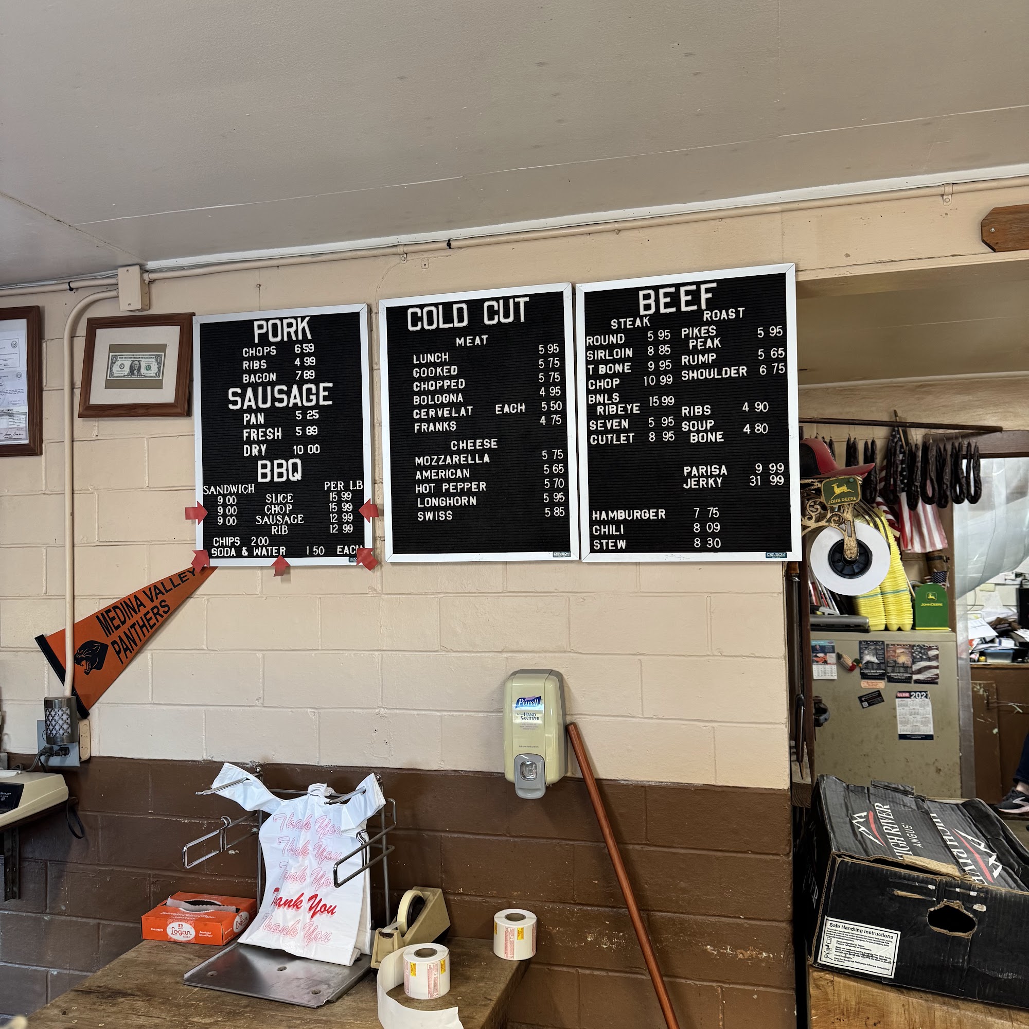 Love this place when the big stores had no more meat. This meat market is stocked and can't beat the price. From steaks to ground beef bacon sausage pan sausage and of beef jerky
