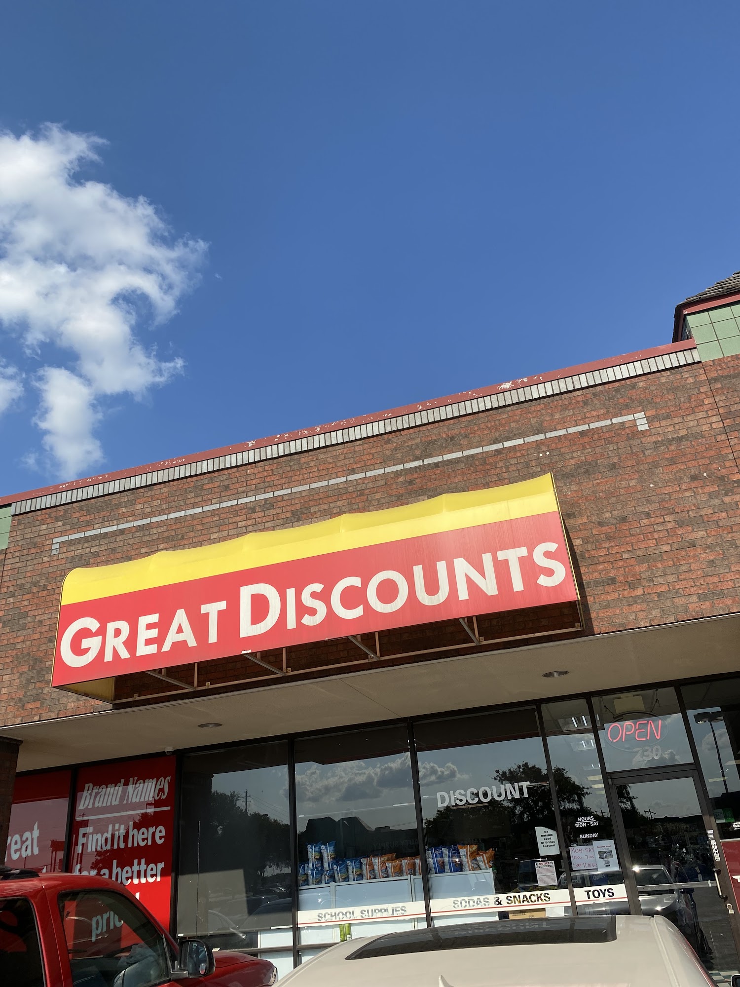 Great Discounts is a store with amazing products and the right prices. Customers find it great for many reasons, stocking up on supplies that last six months or more, including trash bags, paper towels, body wash, bowls, plastic containers, foil pans, washing powder, soap, and beverages. It is a place to get snacks, drinks, and items for holidays like Thanksgiving or for house warmings. Many fill their refrigerators, restrooms, and kitchens from here, avoiding trips to other stores. The customer service is amazing, with very nice, sweet, and attentive staff members who remember customers. The owner is also noted as very nice and sweet. It is a convenient stop for people when they are in the area or on that side of town, whether to grab snacks before the airport or to get supplies for a business. Customers love the quality and the awesome prices, recommending others in the area to check it out.