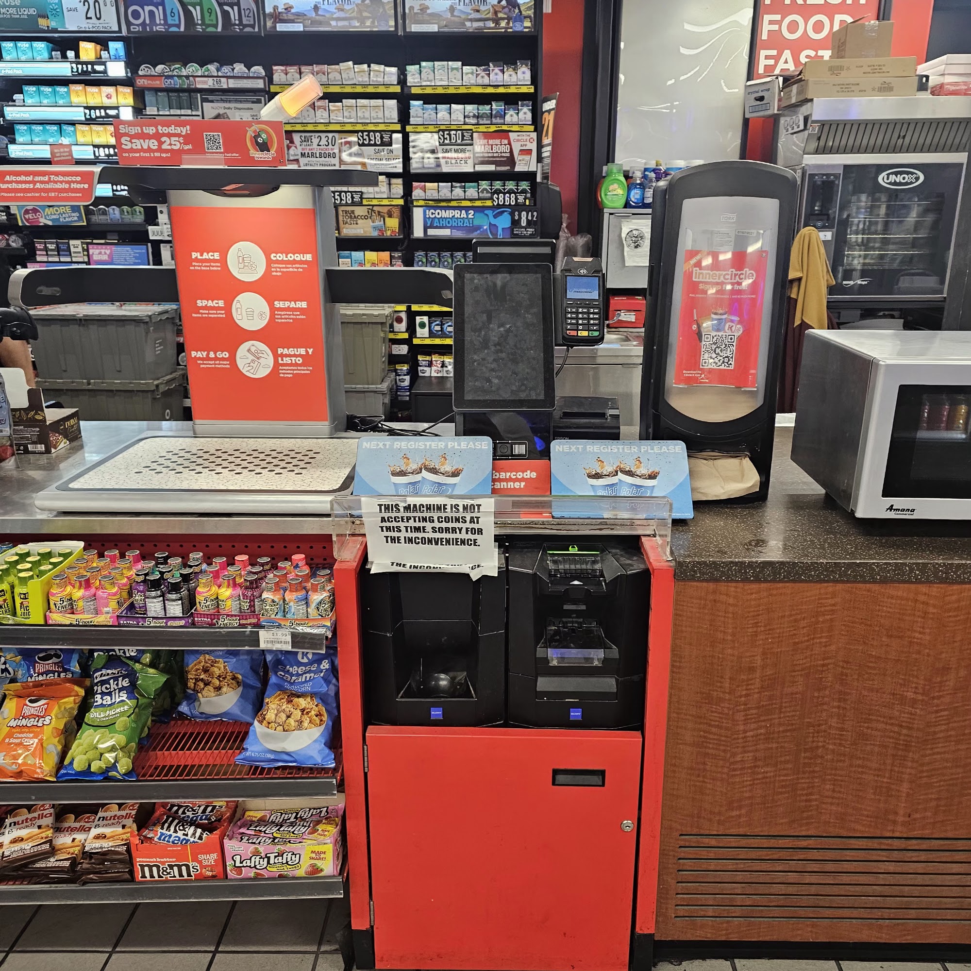 Stopped to use the restroom and buy some snacks. Not even a minute into using the restroom, the door is being bangged on for me to hurry up and to get out as they attempted to open the door twice. Assumed it was an emergency but only an older lady employee was in the store.