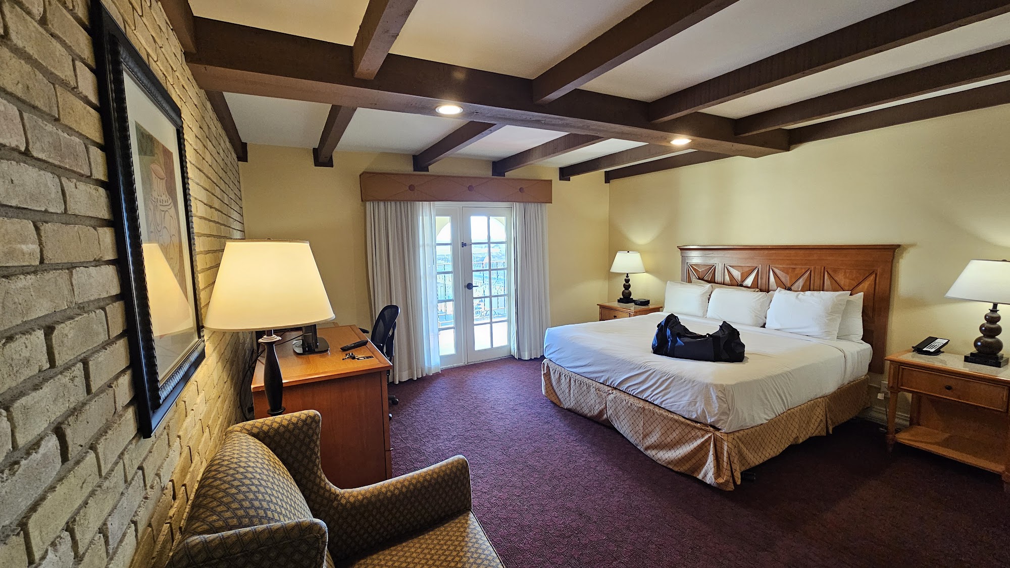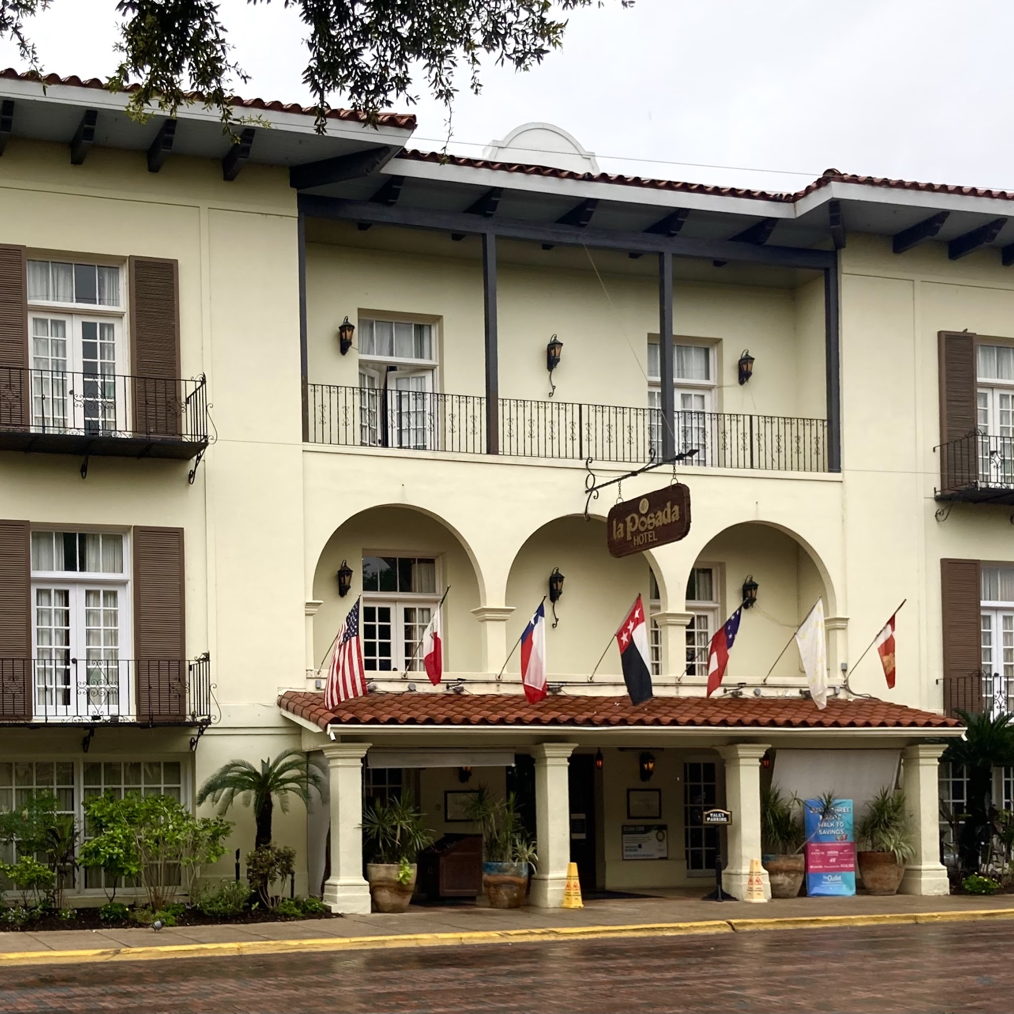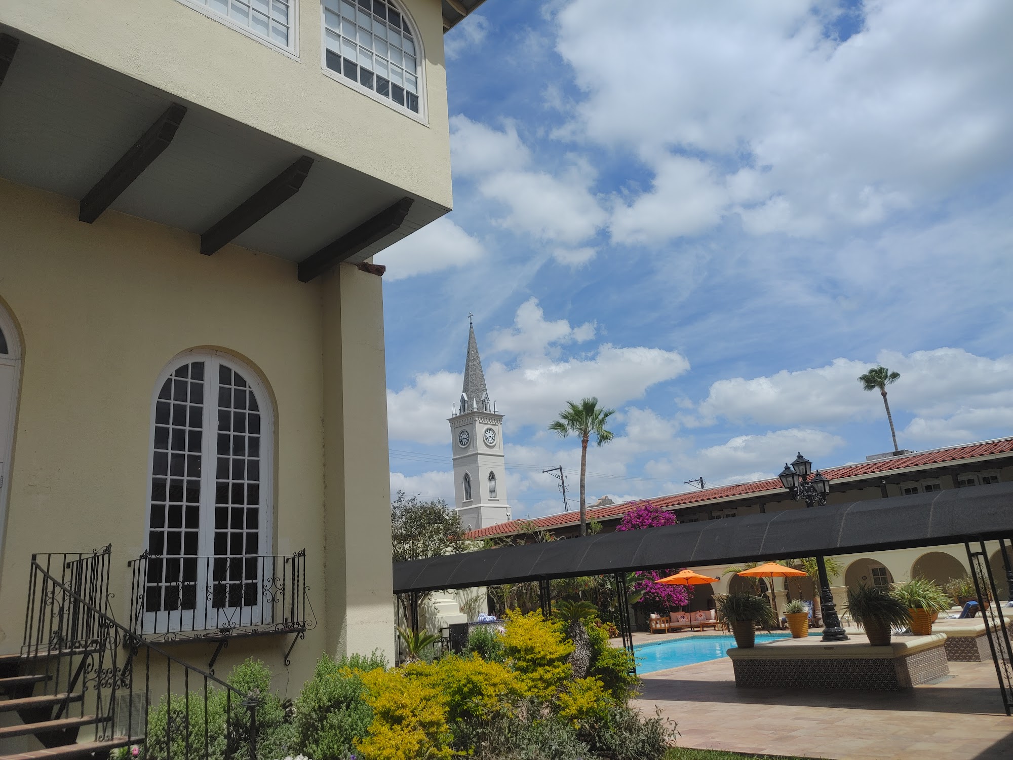La Posada Hotel is a historic and grand four-diamond hotel on the US/Mexico border in a central downtown location, overlooking the public square and near the river. It is an old-school hotel with loads of rooms, described as very clean, quiet, carpeted, and spacious with large bathrooms, steaming hot water, and nice balconies. The hotel offers incredible and very friendly service, with employees frequently offering assistance. Facilities include a nice pool, an exercise room, and two restaurants, including the Tack Room, where food is quick, quality, and as expected with above-par service. The hotel provides a safe environment with great lighting and visible security. Its walkability is excellent, near historical buildings and within walking distance of Mexico. Many guests recommend it as a favorite place to rest.