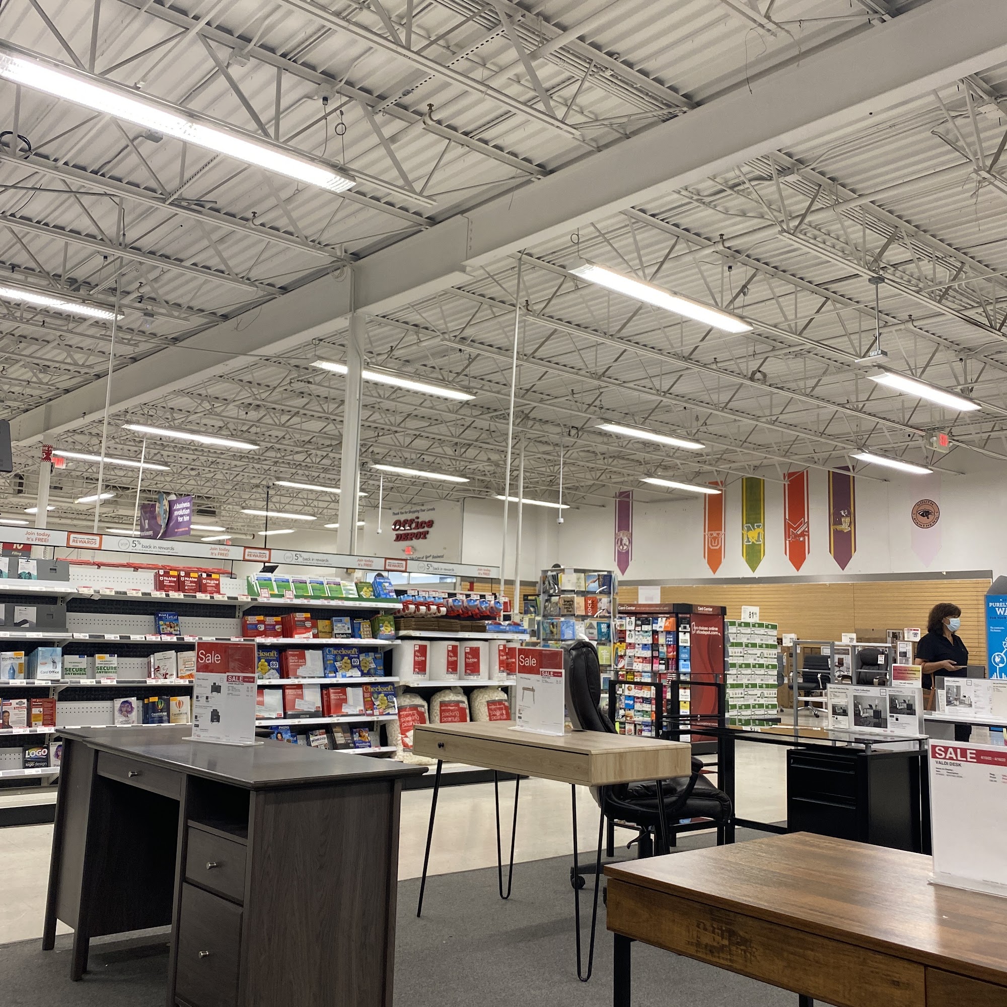 Office Depot offers curbside pickup for online orders. The store provides paper, ink, furniture, technology, cleaning supplies, and business services like custom printing and shipping. Reviews highlight excellent customer service, with associates described as patient, friendly, knowledgeable, and helpful. Specific praise mentions associates going above and beyond, providing favorable suggestions, and assisting with design and printing needs in a nicely manner with a positive attitude. Customers report being very happy with services like copies and prints, noting they came out perfect and were cheap. The store is also noted as an awesome place for shipping supplies like big boxes and bubble wrap.
