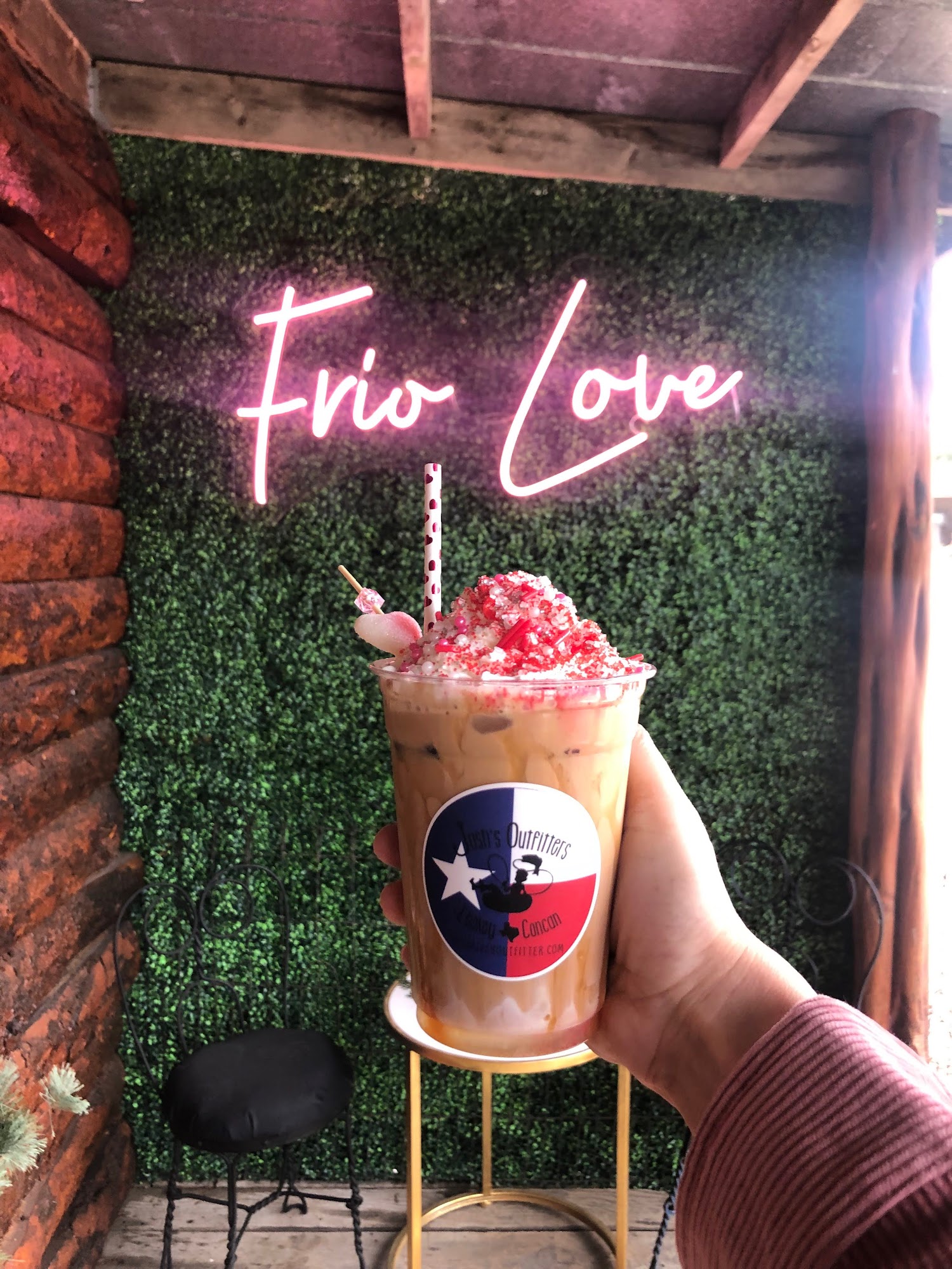 Frio Coffee is a fun little coffee shop and local gem inside a larger store selling knickknacks, river supplies, and souvenirs. The atmosphere is excellent with great vibes, especially on the unique and interesting garden patio, though indoor seating is limited. The baristas and staff are consistently friendly, helpful, knowledgeable, and inviting. The coffee is good and very smooth, with a good selection of tasty and unique choices like the celebrated Irish Cream Latte, Mocha Frappe, chai frappe, hot chocolate, and homemade ice cream. Normal to pricey prices apply. Their chocolate chip cookies are also a must. It is an amazingly fun spot and a must-try for anyone in the Leakey area.