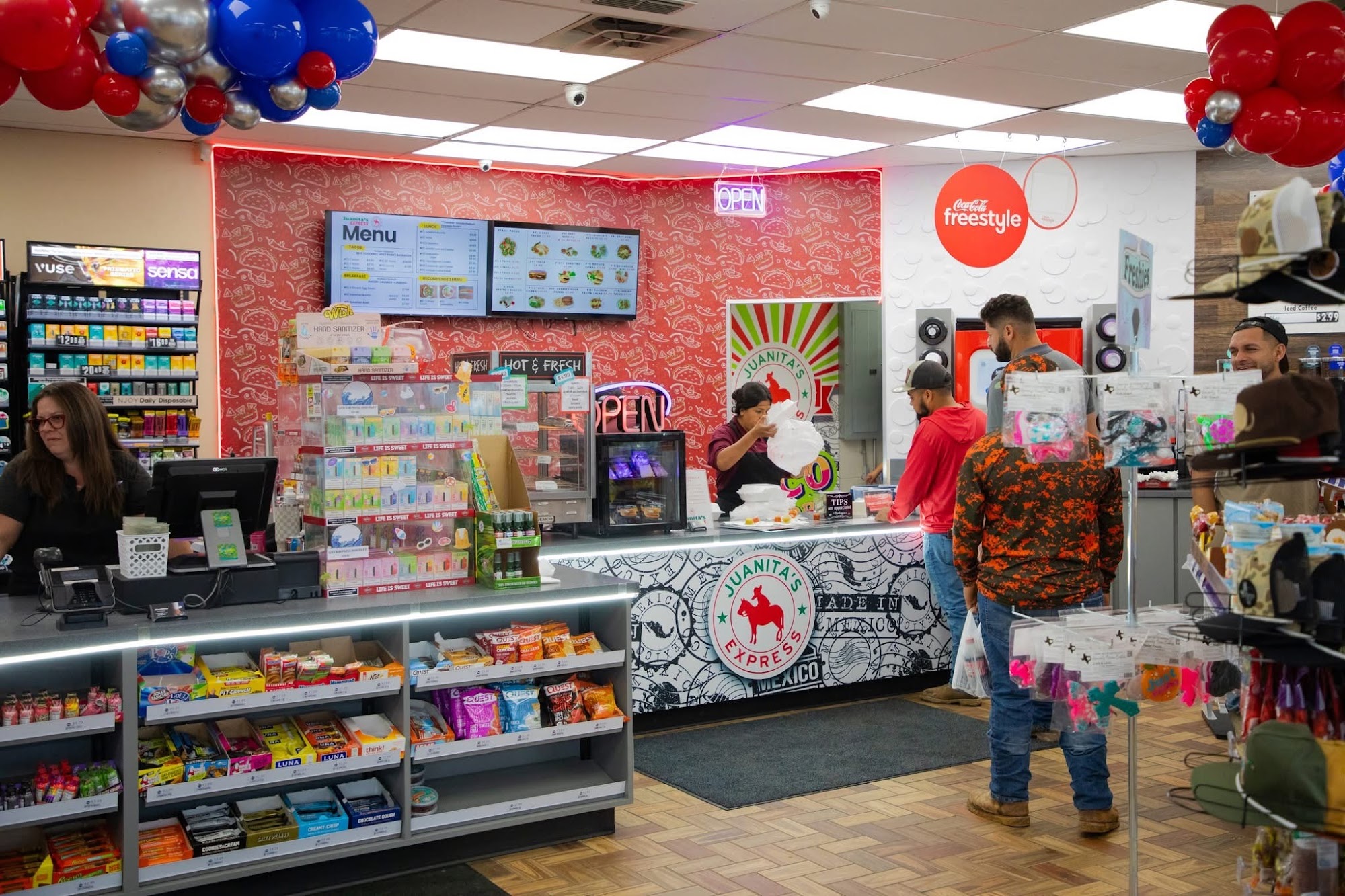 RaceWay is a popular local gas station, convenience store, and restaurant known for its great prices and friendly service. Customers appreciate the affordable gas, which is often the cheapest in town, despite the pumps being a little older. The business offers a clean environment, with new diesel and gas pumps, and a good selection of snacks. The staff are friendly, professional, and treat both regular and new customers well, creating a welcoming atmosphere. Inside, there is a variety of snacks, and customers can also enjoy Juanita’s Express, a Hispanic food place offering excellent, freshly made chicken quesadillas and tacos, with flavorful red spicy sauce. The location is convenient, near I20, making it easy to visit instead of busier gas stations. Additional amenities include lotto, scratch-offs, and an outside ATM. The store also features a beer selection, though some feel it could be improved. The business is highly recommended for its excellent service, low prices, and tasty street tacos, making it a favorite spot for many in the area. Overall, RaceWay provides a friendly, affordable, and convenient experience for gas, snacks, and meals.