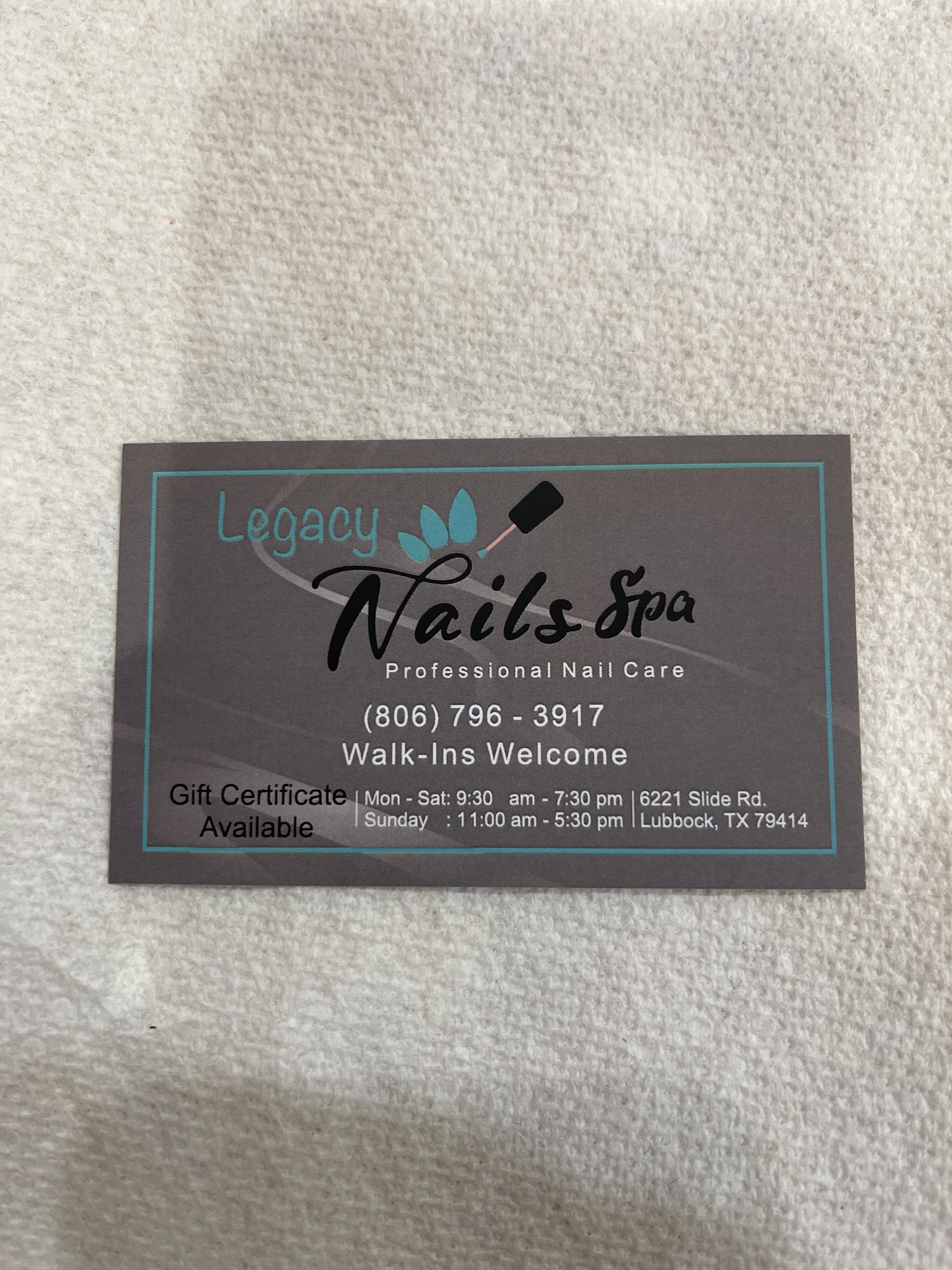 Legacy Nails Spa is a welcoming nail salon that offers both walk-in and appointment services. The salon is known for its skilled and experienced technicians who consistently deliver high-quality manicures and pedicures. Customers appreciate the salon's flexibility with appointments and their willingness to accommodate time constraints. The salon's dedication to providing exceptional service and beautiful nails has earned it a loyal clientele who highly recommend it. Clients praise the salon's clean and friendly environment, as well as the polite and professional staff. The technicians are described as talented, with one customer specifically mentioning the excellent service provided by Lin.