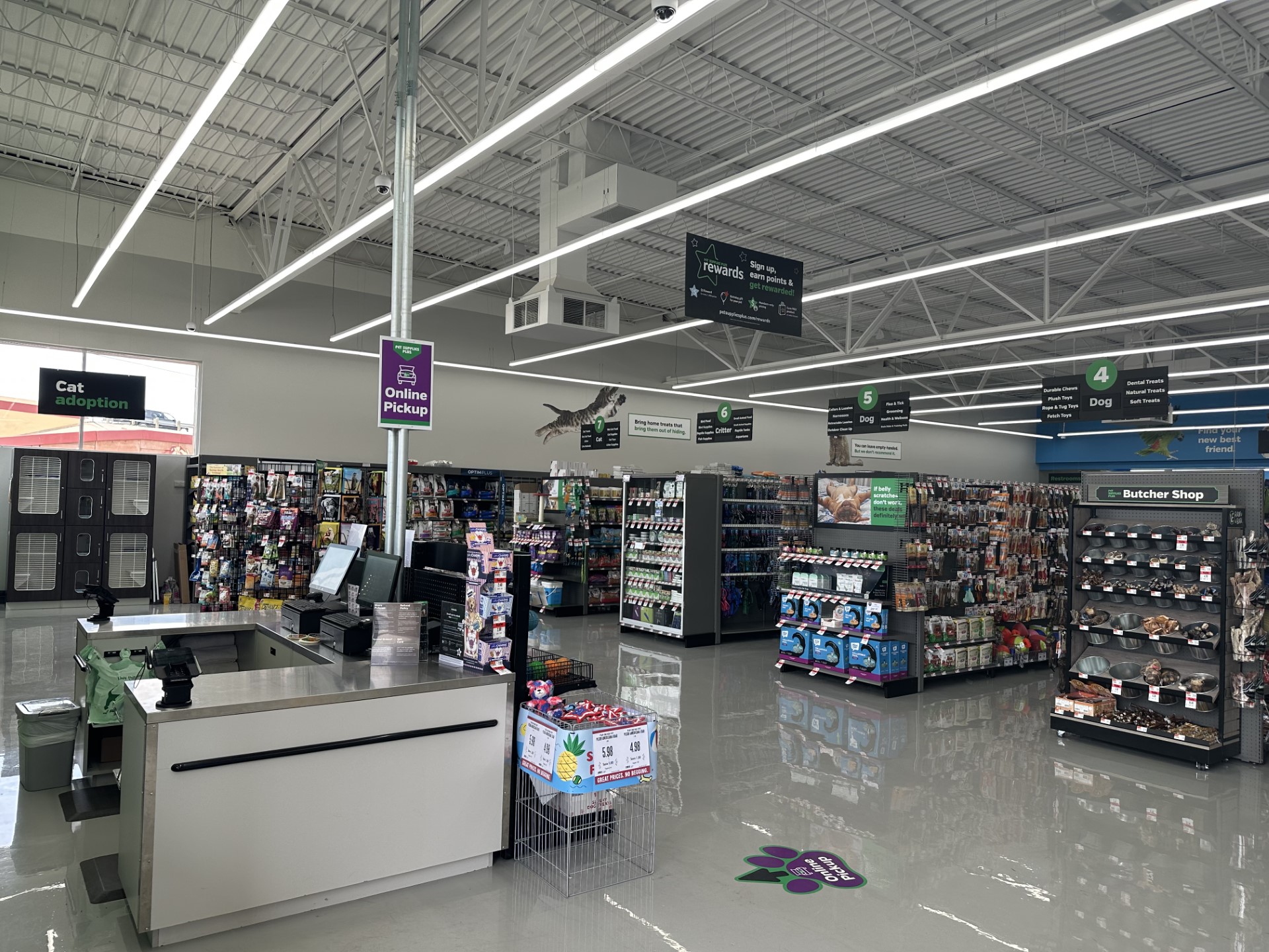 This store is EXTREMELY clean and put together! The dog wash area is huge and they have a huge selection for your pets!