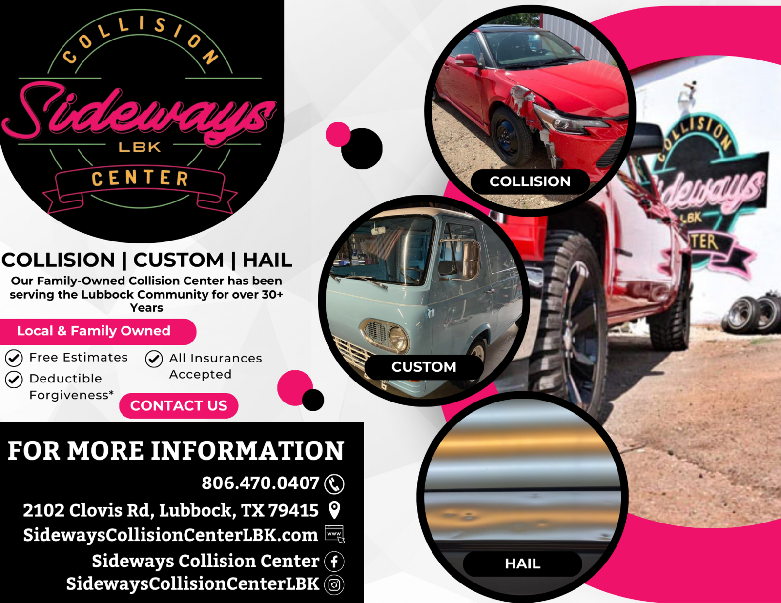 i have nothing but amazing things to say about Sideways Collision. They go above and beyond to give the best service they can possibly give. i will always recommend them to my friends and family and continue to use them in the future.