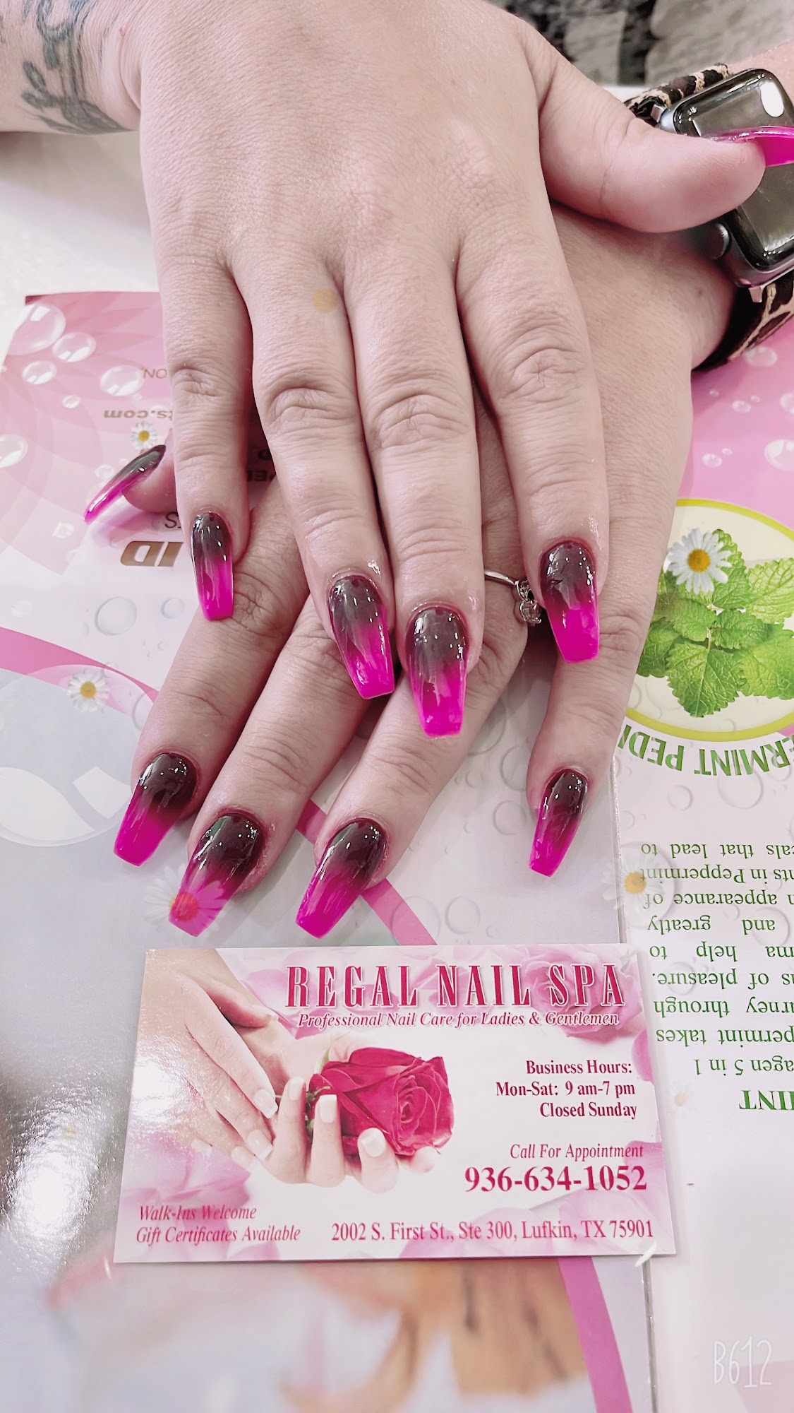 Wonderful service, family oriented. I know nothing about nails and stuff but my daughter said they did a great job!!