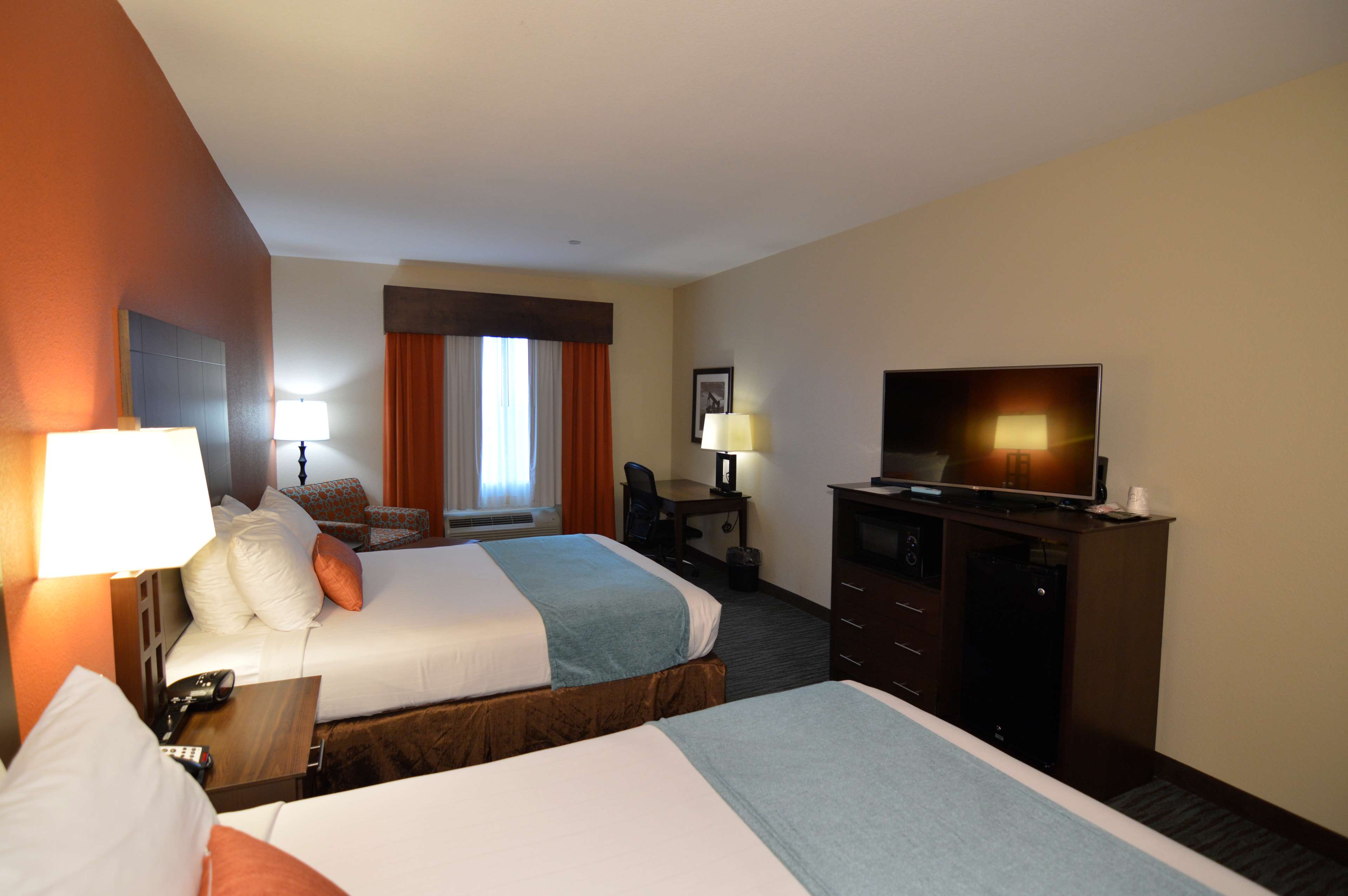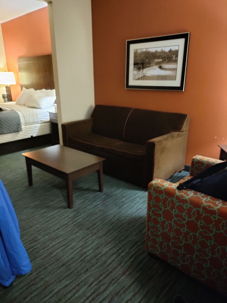 Nice hotel, rooms were large and AC worked great! nice little swimming pool and great breakfast. Only 2 complaints. The tv wouldn’t connect to watch it, and no shampoo/soap in the room we were in. We would stay again if needed