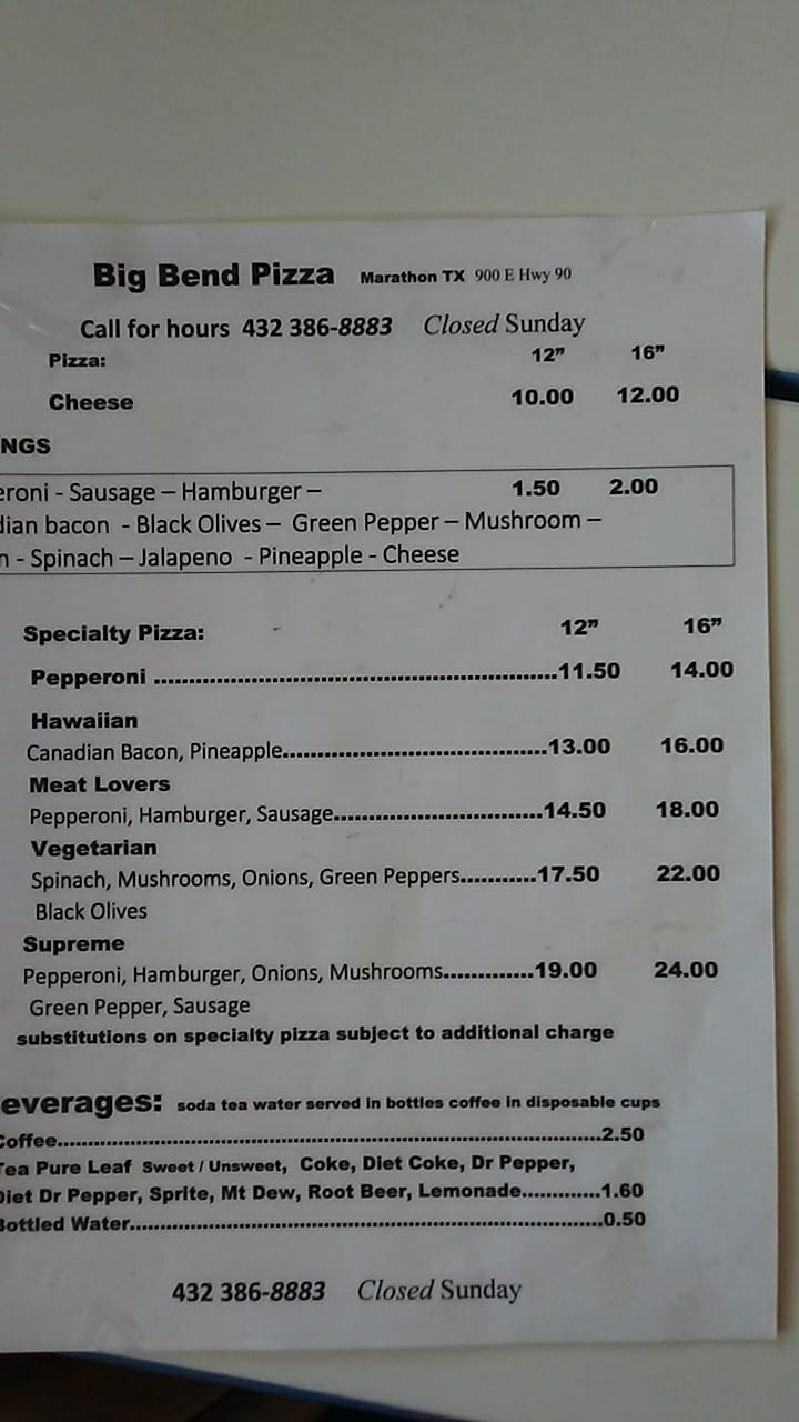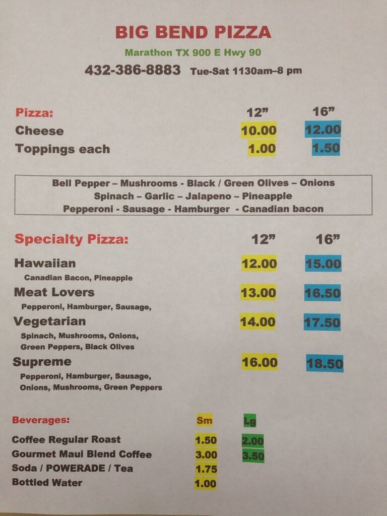 About BIG BEND PIZZA