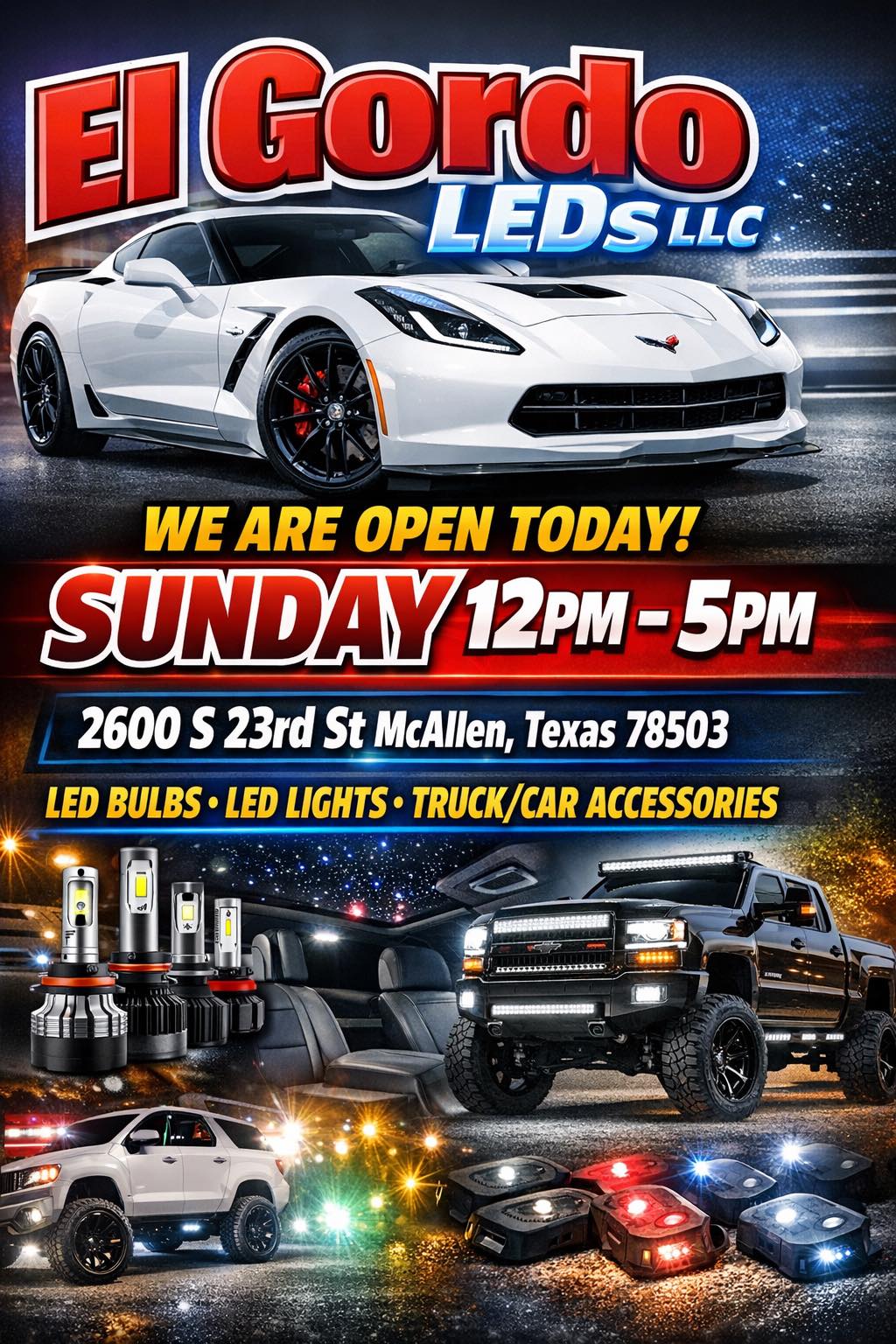 El Gordo LEDs LLC offers the best prices in town for automotive needs in the RGV. They provide LED lights, rocklights, wheelrings, GM HD fronts, hoods, bumpers, grilles, headlights, taillights, foglights, emblems, and air fresheners. Customers are blown away by the exceptional service and professionalism. The team is knowledgeable, friendly, and dedicated to ensuring top-notch LED lighting solutions. They offer great prices, impressive warranties, and a commitment to getting the job done right. Staff go out of their way to show different options, taking the time needed to make sure the job is done excellent. They provide great service, are very helpful, and give good deals. Customers are super happy and satisfied, highly recommending them as the go-to destination for high-quality LED lighting and accessories.
