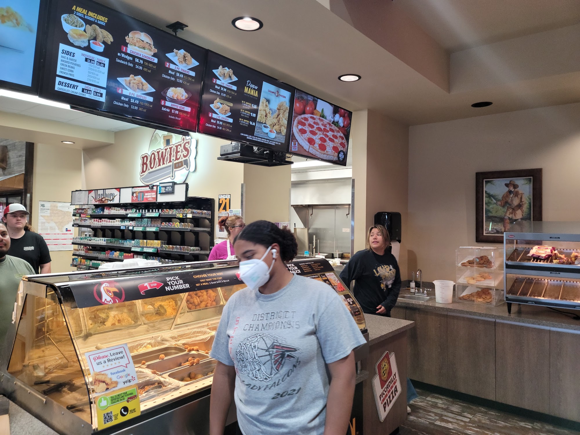 Bowie's is a clean and well-stocked convenience store known for its friendly staff and pleasant experience. Customers consistently note the clean restrooms and clean store. The location provides gas and diesel, along with snacks and roadside products for travelers. The store offers more than typical items, featuring a small general store inside with an interesting selection. This includes a variety of items like clothing, jerky, candles, collectibles, theme specific novelties, and local produced jellies. The food is frequently praised, with mentions of delicious spiced apples, fresh gizzards, and an excellent chicken sandwich described as superior to major chains. The service is very friendly and spontaneously helpful, with staff going above and beyond, as in one instance helping return a lost item. It is considered the best place to stop in the area, with many making it a regular refueling point on their trips.
