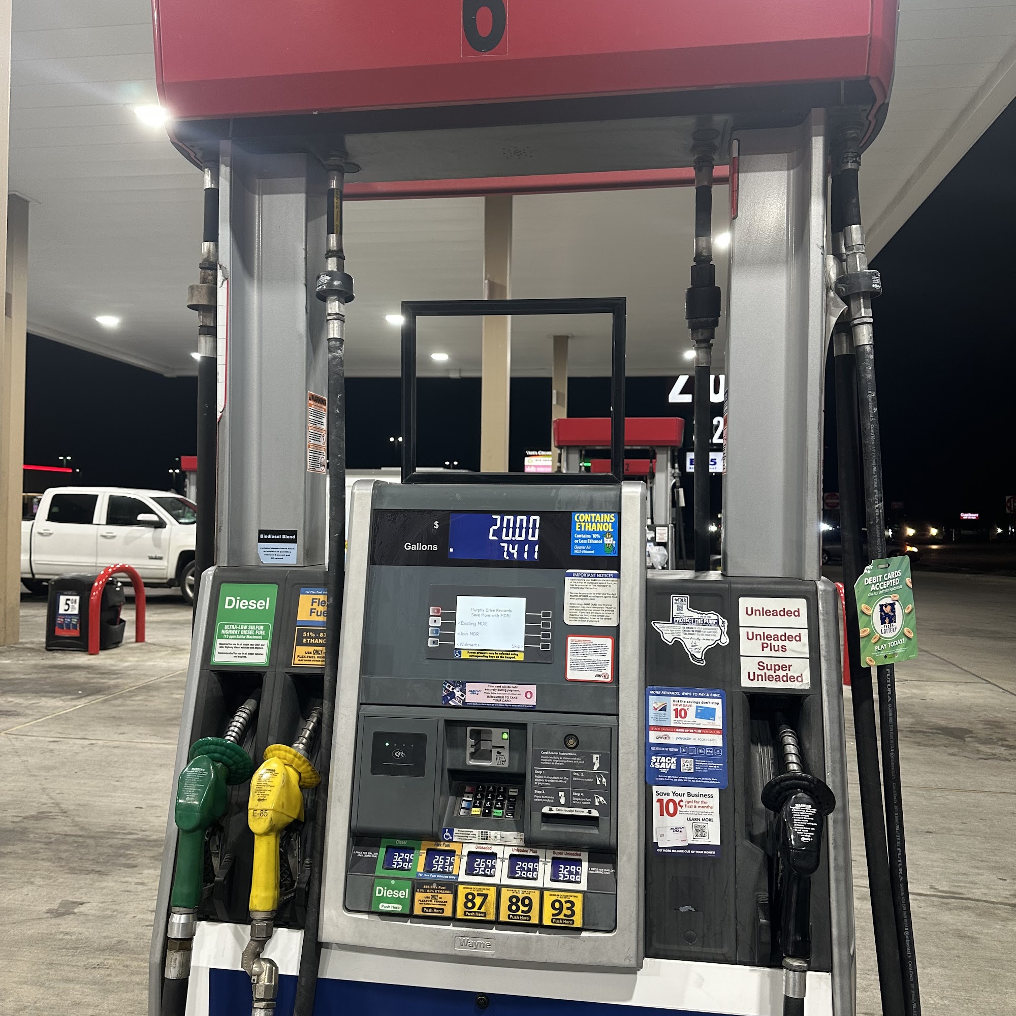 Murphy USA is a nice and clean gas station conveniently located at the Northwest corner of Galloway and Hwy 80, offering easy access. It features 24-hour pay-at-the-pump with card and tap-to-pay for convenience. The place looks new and is kept in great shape, with a clean inside and convenience store. It provides competitive and the cheapest gas prices in Mesquite, including E-85 fuel available at every pump. The employees offer nice customer service and are honest, as demonstrated by safeguarding a forgotten backpack. Customers highly recommend this place for cheap gas and good service.