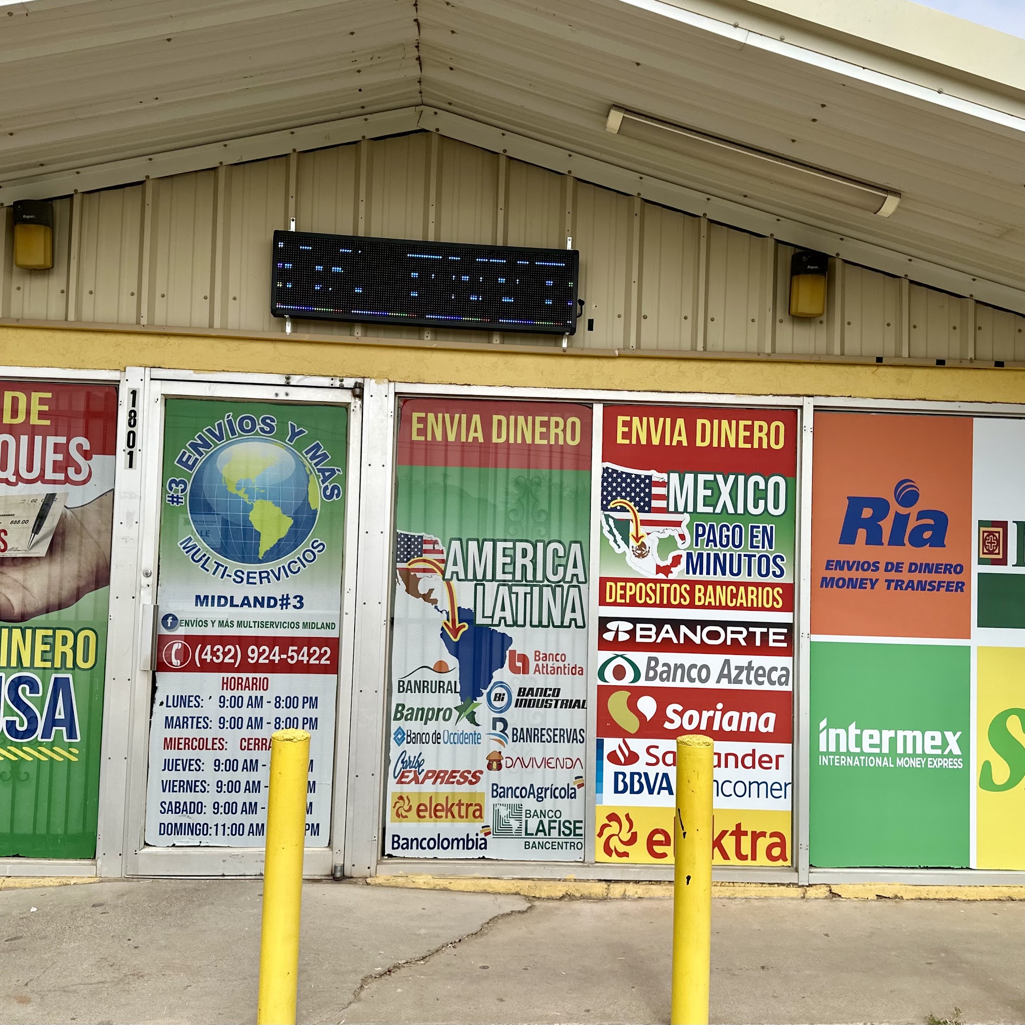 "Envios y Mas Multiservicios #3 en Midland, Texas. Localizados dentro de la Panadería ‘El Bolillo Mexicano’. Aqui para ofrecerles el mejor tipo de cambio y servicio notariales. Envios y Recargas para cualquier lado de LatinoAmerica. Notary Public Services los Sabados