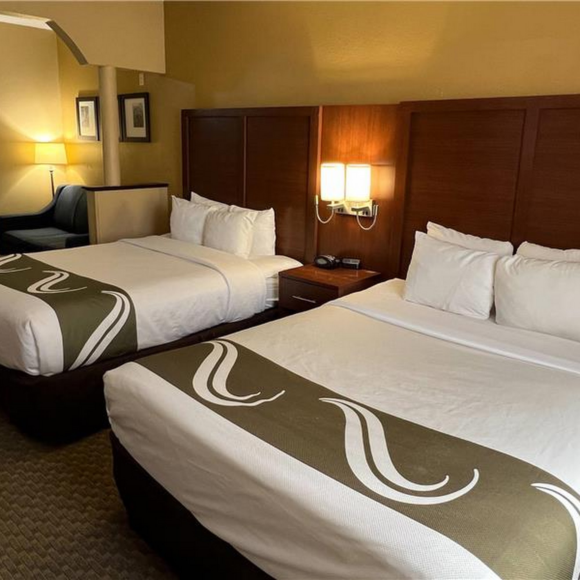 The Quality Suites Midland North Loop 250 offers a convenient and affordable place to stay, especially for travelers seeking a simple, clean, and quiet environment. The hotel has an older building that feels quaint and well-maintained, with clean rooms and comfortable beds and pillows. Guests appreciate the quiet atmosphere, partly because the building is old, which helps block out noise from neighbors. The staff are generally nice and accommodating, with some reviews highlighting their kindness and helpfulness. The front desk service is praised as wonderful, contributing to a positive guest experience. While the rooms are clean, there are some minor issues, such as worn-out outlets where charging devices can be difficult and a few ink spots on the carpet. The decor appears dated, and furnishings show signs of wear, which slightly detract from the overall ambiance. A notable concern is the bright spotlights shining at the windows from the front of the building, which can make it hard to fall asleep or sleep comfortably if light enters the room in the middle of the night. Additionally, some amenities, like the elevator, had minor maintenance issues, such as broken tiles, and the wired phone in the room feels outdated. The hotel is not particularly fancy, but it provides a good night’s sleep with a decent breakfast and quiet nights. Some guests noted the absence of hand soap in the men's public restroom, a small detail that could be improved. Overall, the hotel is a solid choice for those seeking a basic, clean, and quiet stay at a good price, with friendly staff and a convenient location about 15 minutes from downtown.