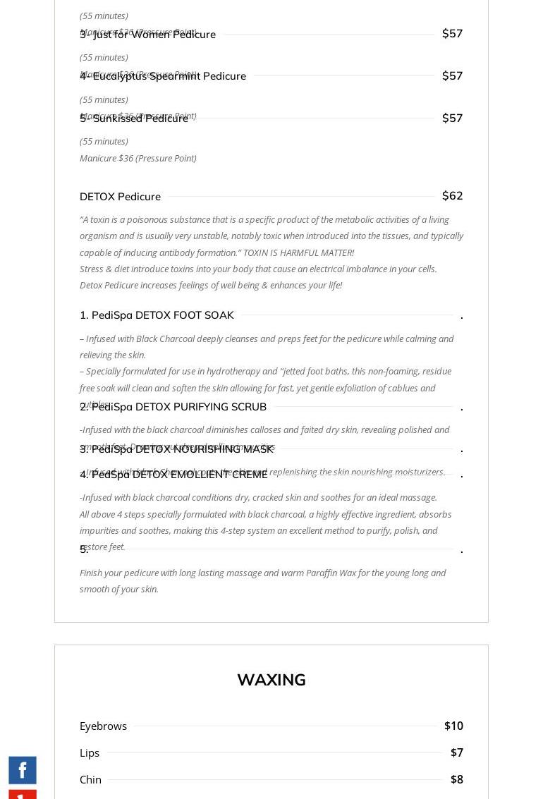 Great relaxing experience..got manicure and pedicure..also carried my granddaughter. She had the blush with orange tip for nails and blush for toenails...she was well pleased also..
