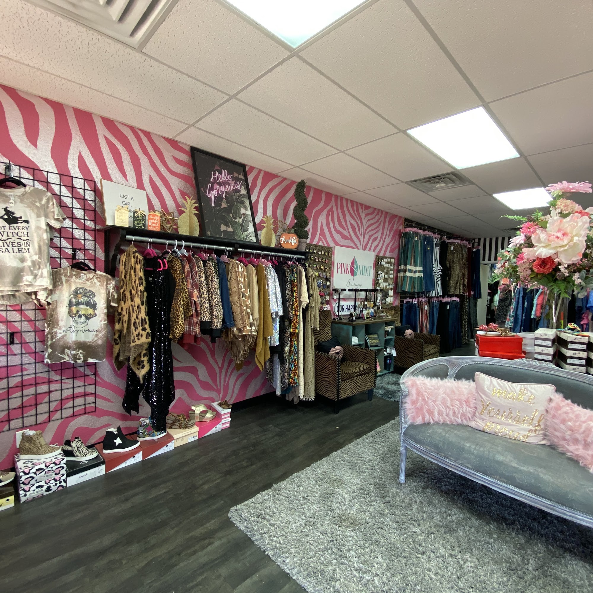 Pink Mint Boutique, located in Odessa, TX, was voted Best Woman's Boutique of 2020 by Best of The Permian Basin Readers Choice. It offers a wide range of stylish clothing, jewelry, shoes, and accessories for women of all ages and sizes, from size 1 to 20 and XS to XXXL. The boutique has a fun, western vibe with a variety of products including dresses, jeans, candles, cowhide rugs, and gifts. Customers praise the friendly and helpful staff, highlighting the welcoming atmosphere and good vibes. Many shoppers find unique, one-of-a-kind pieces, perfect for themselves or as gifts. The owners take pride in providing an enjoyable shopping experience, with a selection that appeals to different tastes and sizes. Whether searching for something special or just browsing, Pink Mint Boutique is known for its great style, friendly service, and relaxed environment that makes every visit fun and memorable.