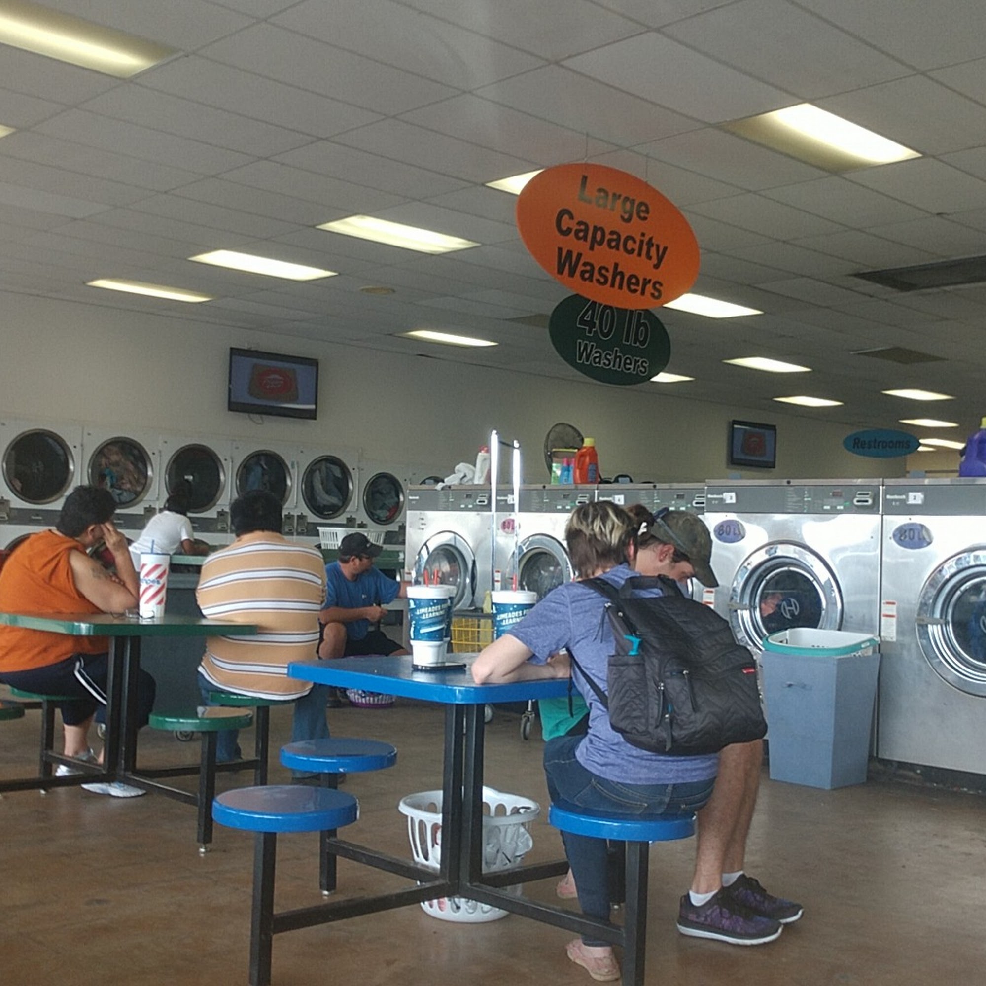 Clean comfortable place to was clothes. Bathroom is clean and does not smell. Pretty good selection of washers, the xxl washers might incur a wait. Plenty of dryers. Price seems ok, dryers work well. I like that I do not need quarters and can use a card. Bring your own entertainment.