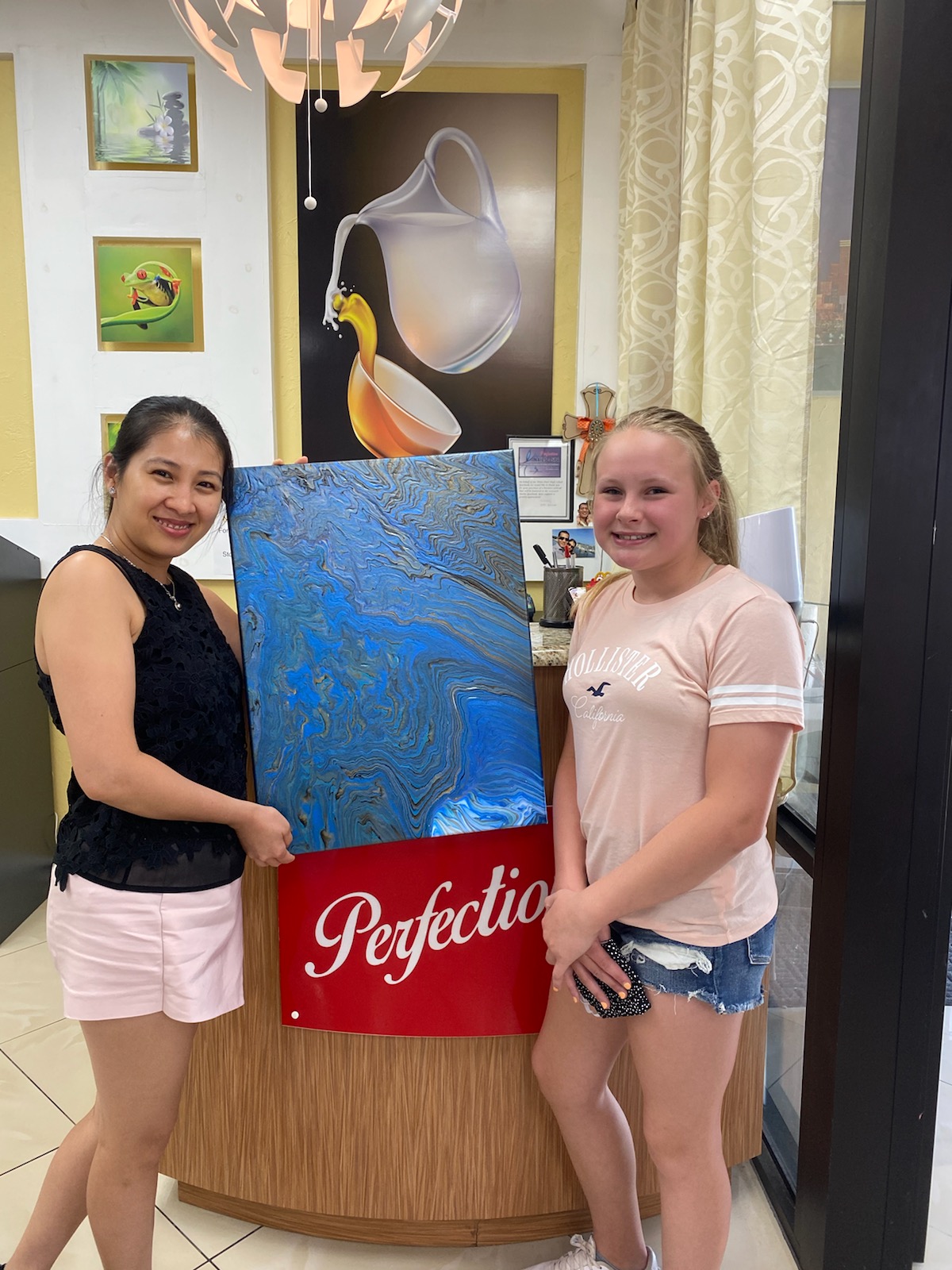 Ashley did a fabulous job. I got a new set of acrylic French manicure and requested her to do art on feature nails her choice. This is typically a gamble. She exceeded expectations. They're absolutely gorgeous !