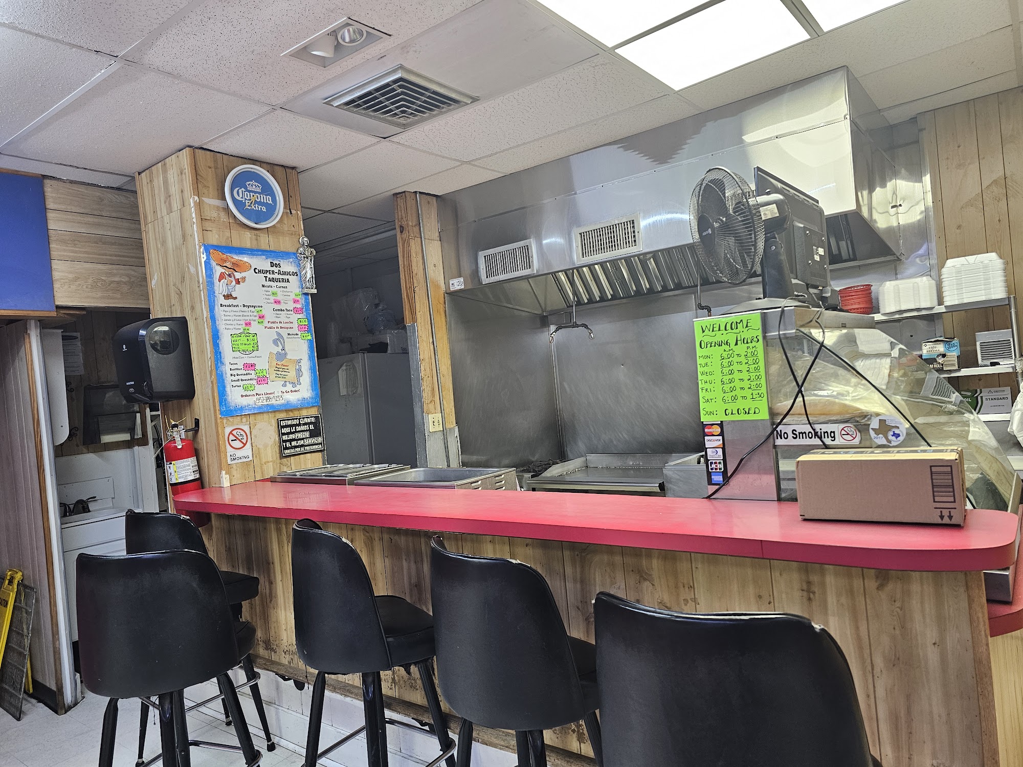 Small Grill inside, torta fajitas con to-do delicious ?, great tacos also!!!!Been stopping by for years when in the area busy during lunch truck driver hot spot ?