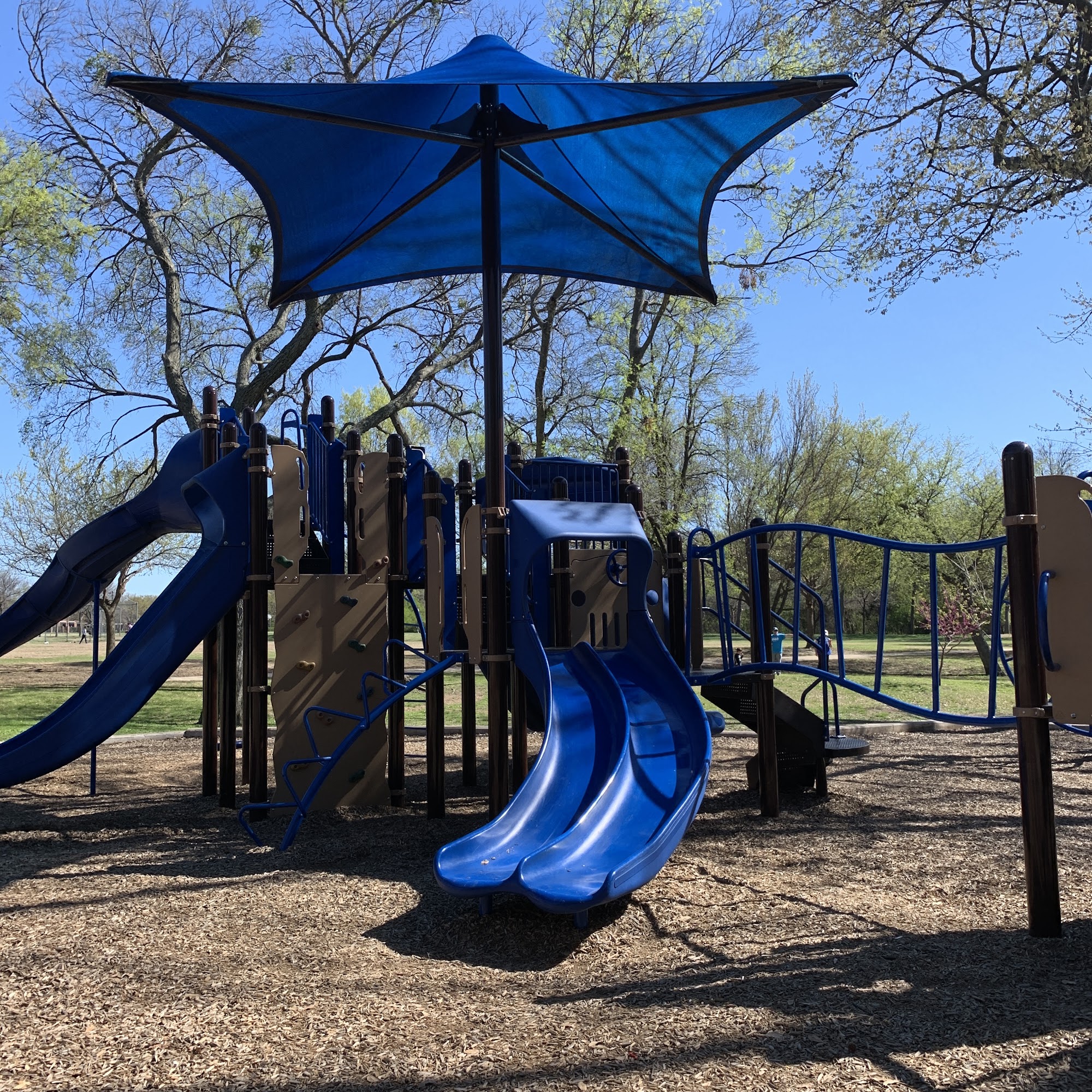 Coyote Creek Park is a beautiful, well-kept park and somewhat a hidden gem. It is not highly trafficked and never really crowded. The park contains a good, relatively new playground with unique features and plenty of space for free play. There is a large open field, a jogging/cycling track, basketball courts, and a very good picnic area with plenty of tables. Lots of shade and seating is available. Note there are no public bathrooms, but the library is a short walk away. A creek runs along the west side, so watch for mosquitoes in warmer months.
