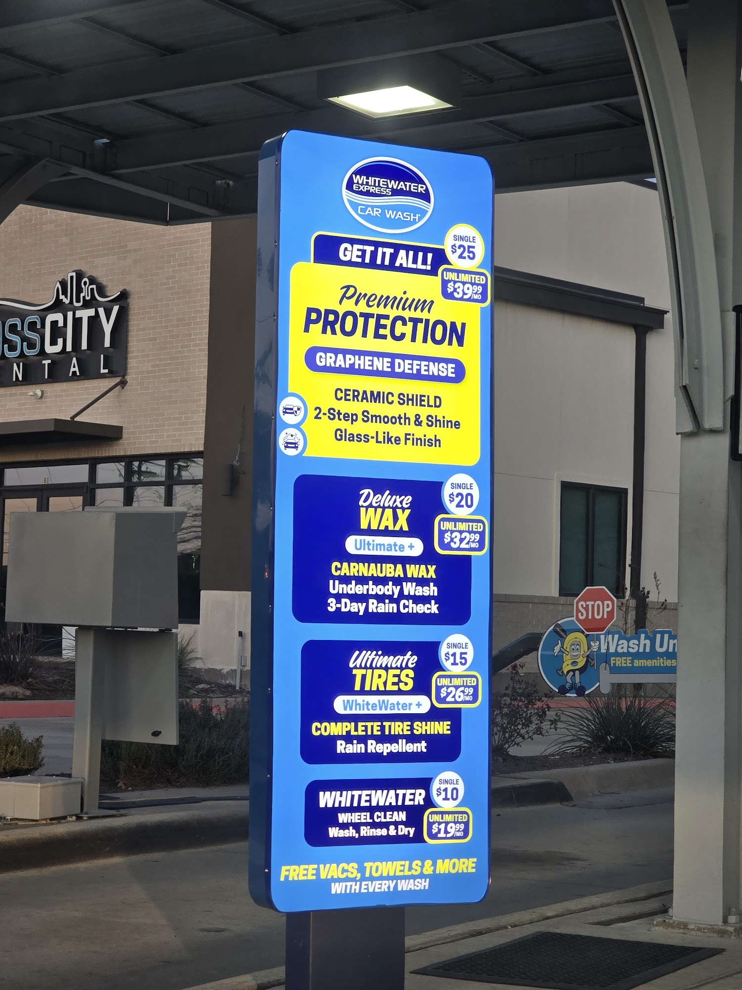 WhiteWater Express Car Wash is a modern, growing chain with over 100 locations. The facility features modern equipment, a flat railing system, and reliable self-drying. The service includes bug spray, plenty of fresh towels, effective floor mat cleaners, and strong vacuums in a shaded area. Employees are consistently noted as friendly, helpful, hardworking, and attentive, contributing to a well-kept establishment. Customers find it a great value, with many recommending the membership as worth it for keeping a car clean. The car wash actually washes your car effectively.