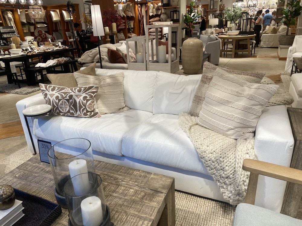 Pottery Barn is a renowned home furnishings and decor retailer, offering expertly crafted products through a multi-channel approach. With a vibrant ecommerce site, inspiring catalogs, and conveniently located brick-and-mortar stores worldwide, the company has been a trusted source for creating beautiful and comfortable living spaces since 1949. Customers praise the store's well-organized and spacious layout, which allows them to easily browse the extensive selection of furniture, bedding, and accessories. The online inventory is excellent, though customers note that any returns must be handled through the online customer service route, as the physical stores are unable to process them. The Pottery Barn experience is often described as bustling, with sales associates eager to assist customers, especially those interested in larger purchases. While most employees are praised for their helpful and friendly demeanor, a few instances of less-than-ideal customer service have been reported, with some associates appearing impatient or disinterested. Despite these occasional service challenges, customers generally appreciate the store's design center, which offers a wide range of fabric and leather color options, making it easier to coordinate their home decor. Overall, Pottery Barn is regarded as a reliable destination for quality and stylish home furnishings, providing a pleasant shopping experience for those seeking to create their dream living spaces.
