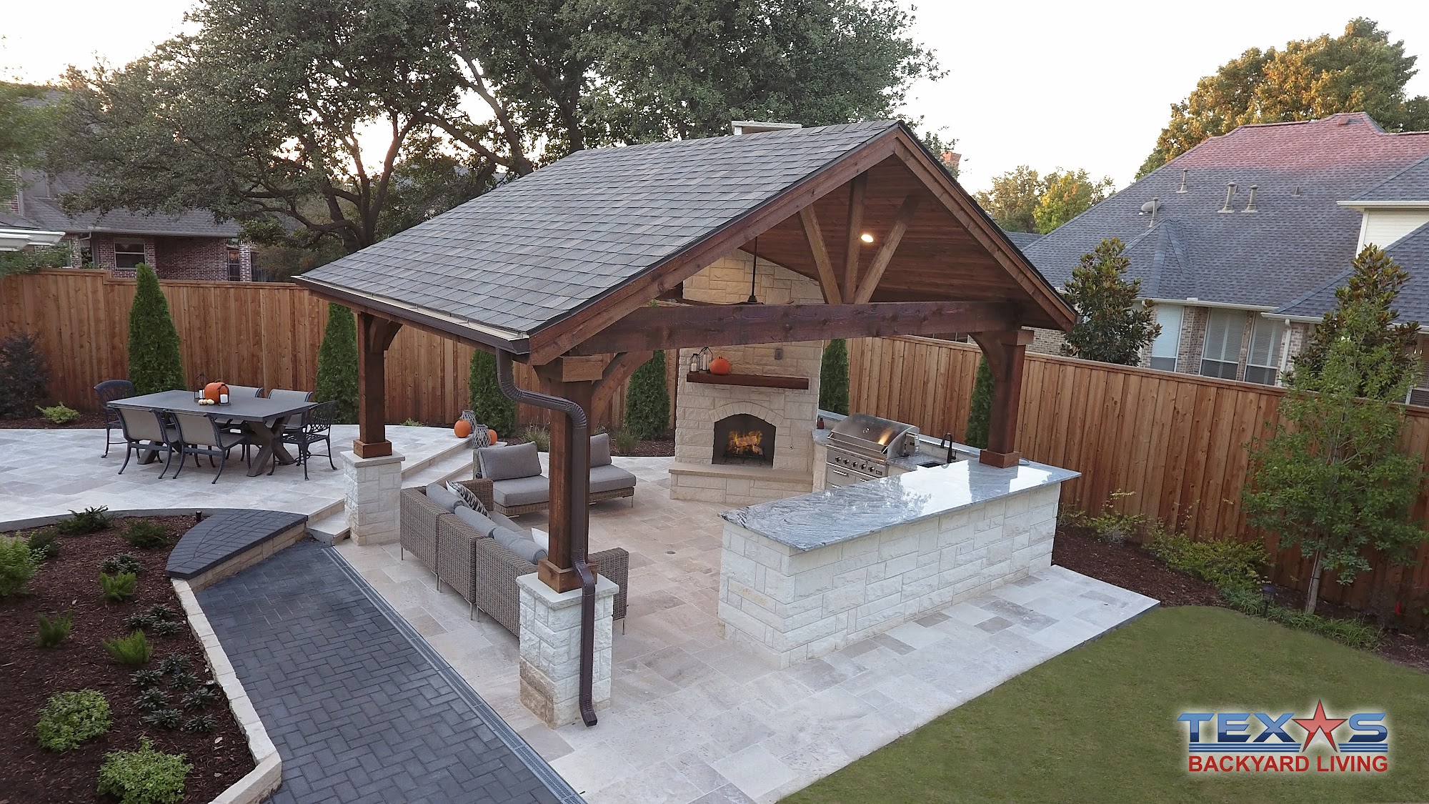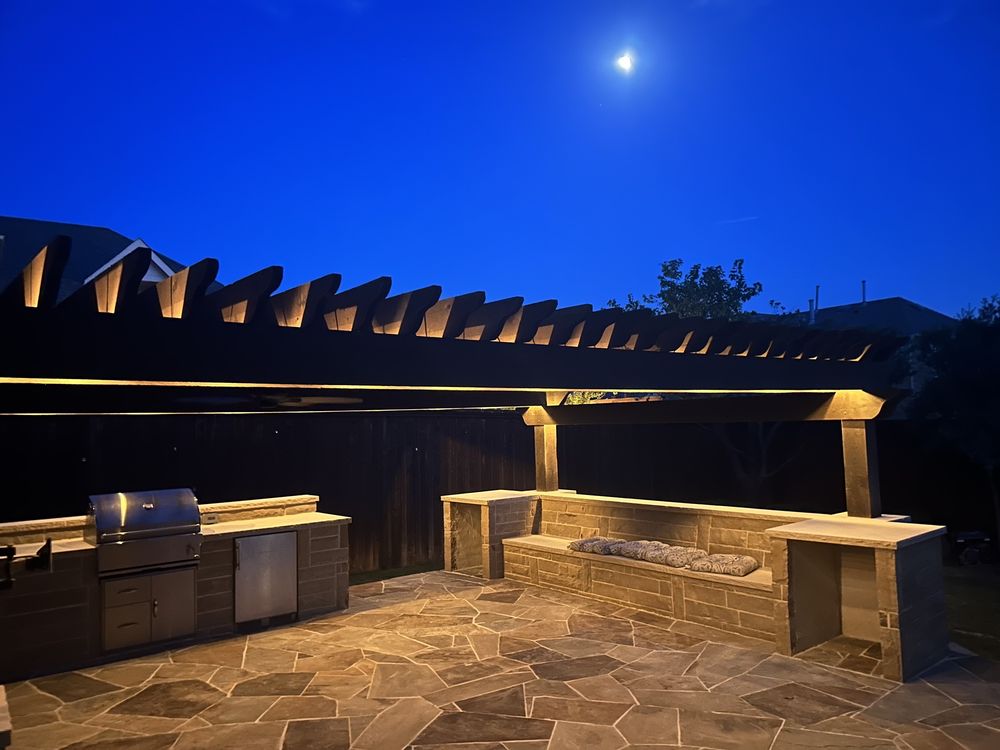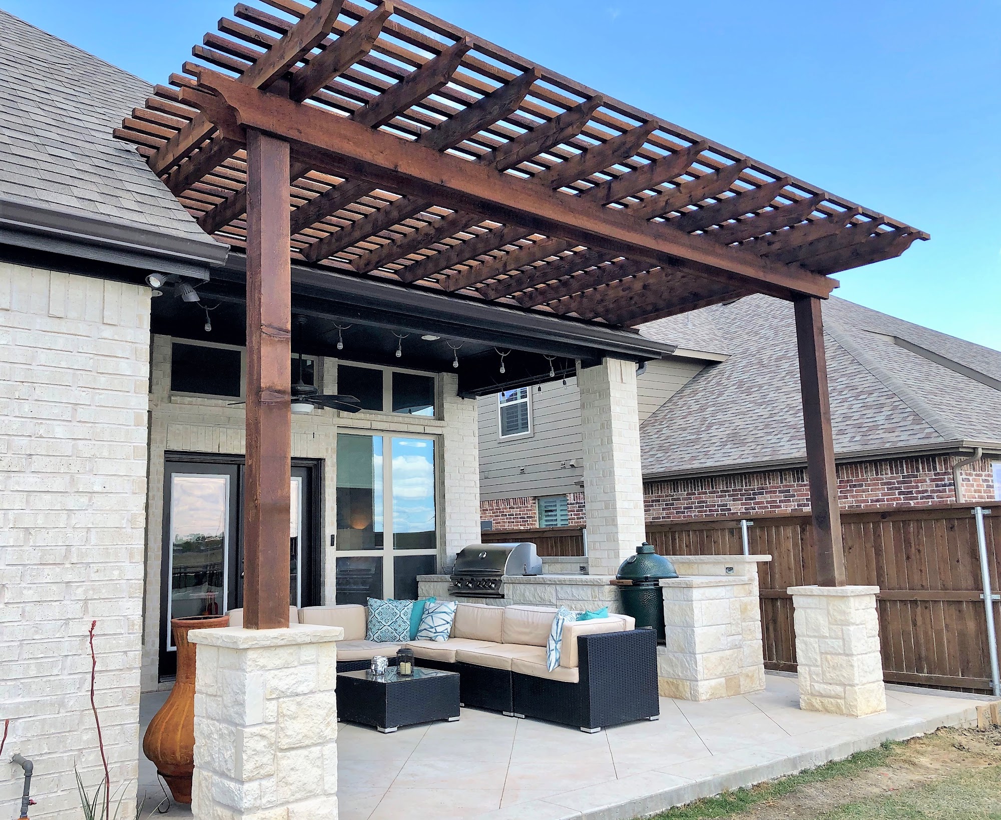 Welcome to Texas Backyard Living! We are a highly reputable family owned fence and outdoor living company specializing in new fences, outdoor living areas, patio covers, pergolas, decks, outdoor kitchens, outdoor fireplaces and fire pits, stonework, stamped concrete, automatic gates, synthetic grass, pool remodeling, staining, and fence repair. We service Plano, Allen, Frisco, McKinney, and surrounding Dallas and Fort Worth areas. Our mission is to provide each customer with professional service and quality workmanship while keeping projects on time and under budget. We take pride in our work and create value through competitive pricing and unbeatable warranties.