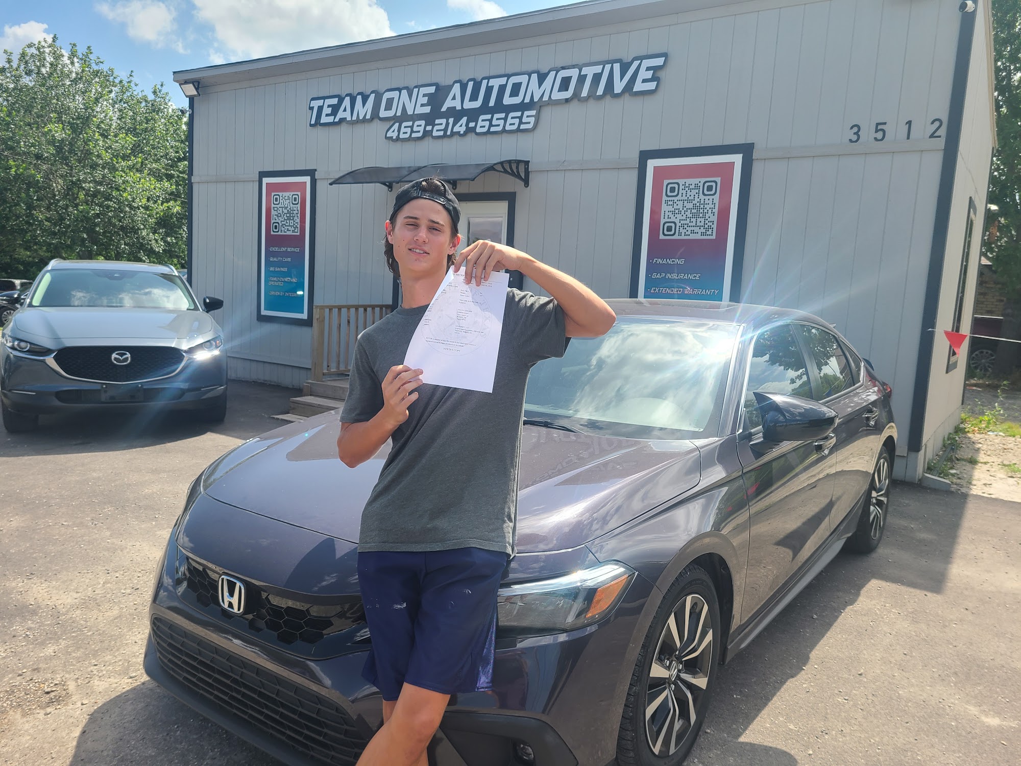 Team One Auto was great! Everyone was super nice and helpful. The process was fast and easy, and they explained everything clearly. The car was in great shape and exactly what I wanted. I’d definitely recommend them to anyone looking for a car!