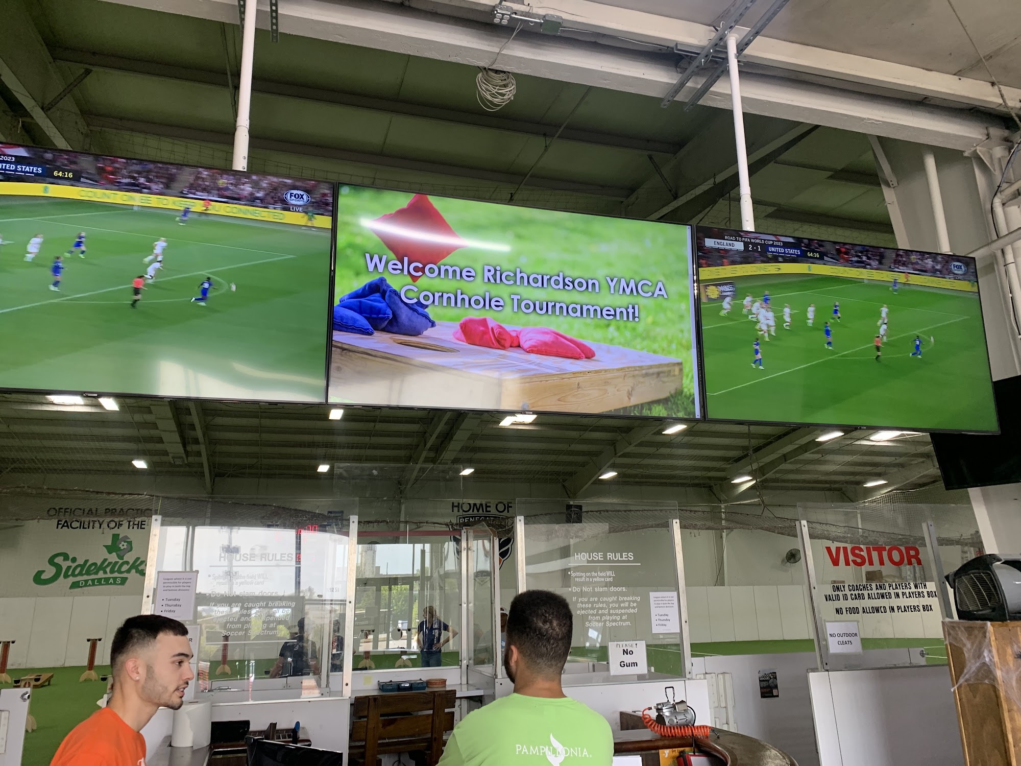Very clean and large indoor and outdoor soccer arena. There is a bar area where you can watch a game or just view the sports ball on TV. They have good bleachers for watching live events. Parking can be tight when they're busy.