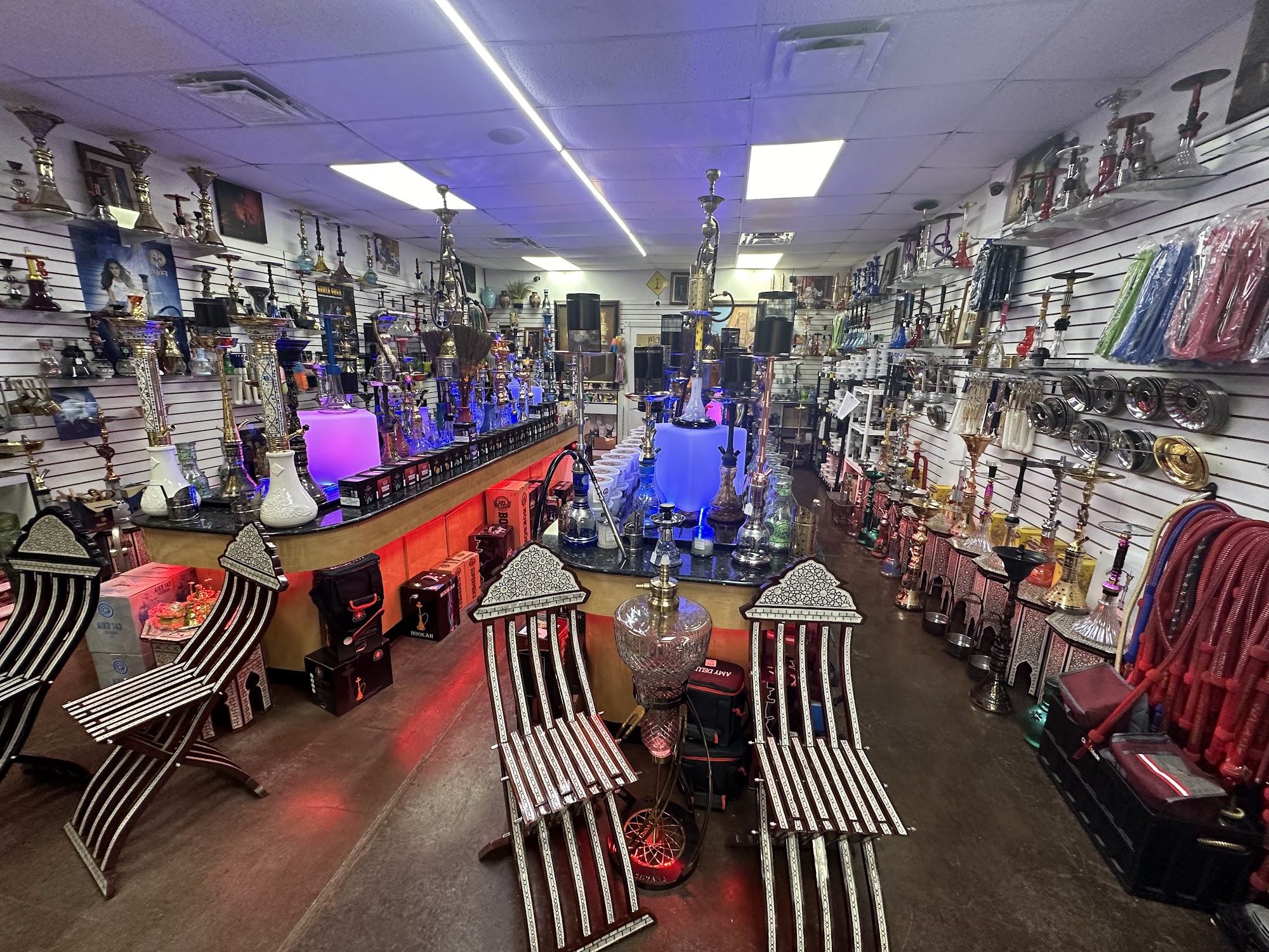 The Hookah Station, located in Richardson, TX, is a premier smoke shop known for its luxurious atmosphere and beautifully organized display of glassware and smoking accessories. It offers a wide selection of premium tobacco products, including Al Fakher and Mazaya, along with authentic hookah pipes. The shop is praised for its affordability, with loyal customers appreciating the consistently low prices and exceptional customer service. The friendly and knowledgeable staff, including a welcoming front desk attendant, ensure a great experience for all visitors. The Hookah Station also features a chill environment with great music and a variety of hookah flavors, such as kiwi, guava, and mint. It is a BYOB venue with nearby food options, making it an ideal spot for social gatherings. Customers have shared positive experiences with attentive staff who take care of their needs, solidifying The Hookah Station as a favorite hangout for friends.