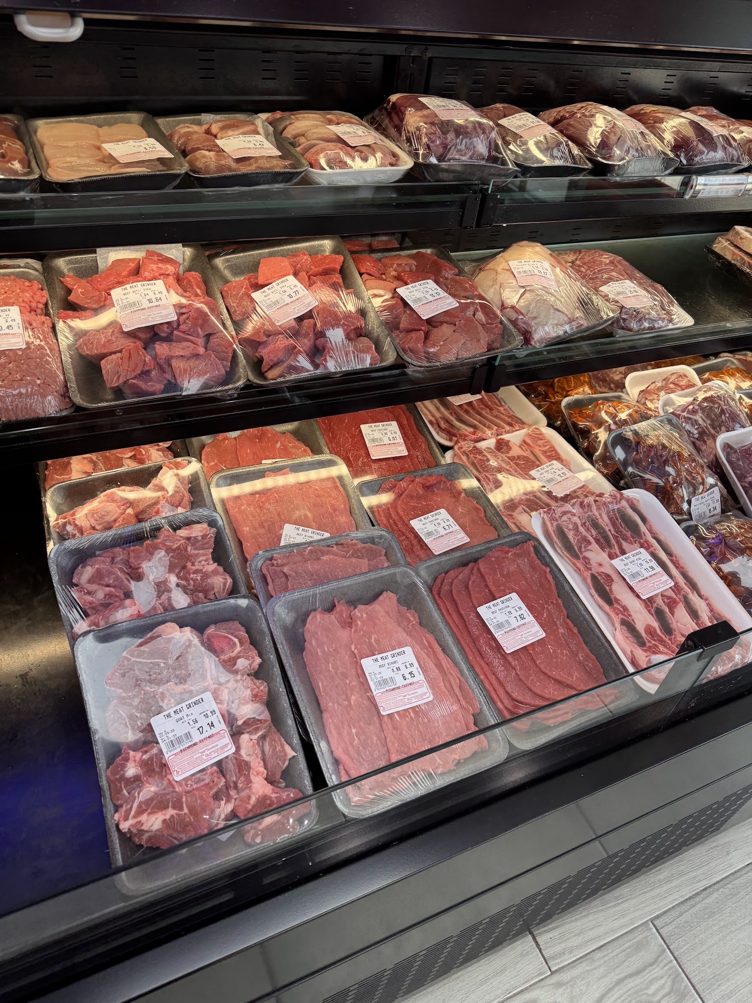 The Meat Grinder is a superb one-stop-shop for all home cooking needs, offering a great variety of beef, mutton, and chicken in all cuts. The quality of the meats is excellent and not pumped with antibiotics, with very reasonable and competitive prices. The super-friendly, super-hospitable staff provide excellent customer service and are ready to provide information. They have a selection of pre-marinaded options, seasoned kofta, and breaded chicken, and will prepare meat to your liking. The super clean store has recently expanded to include a supermarket and a Mediterranean grocery store next door. Customers love the trusted products, great pricing, and reliable last-minute service for large orders.